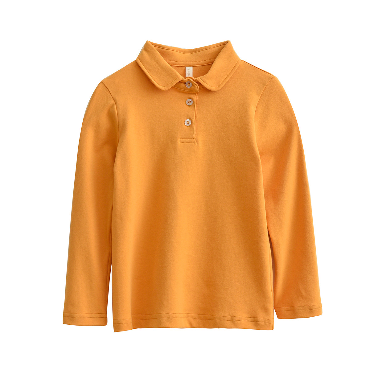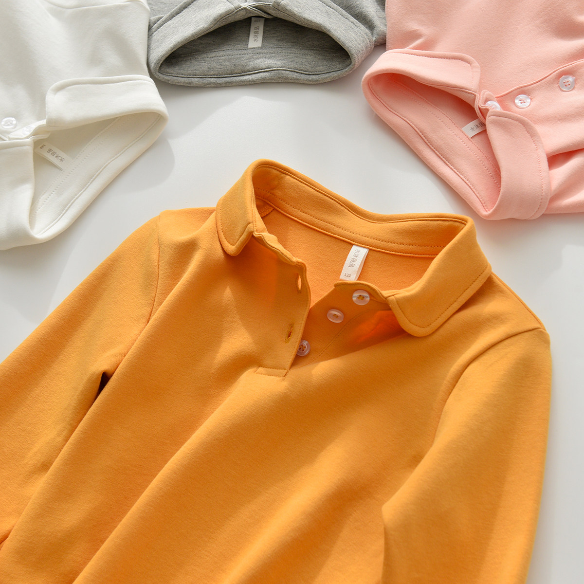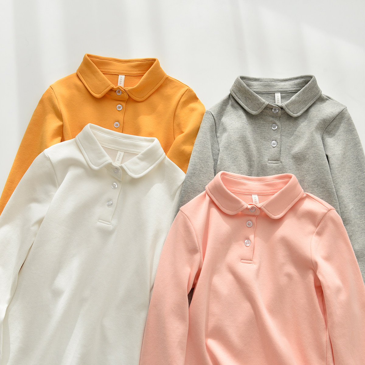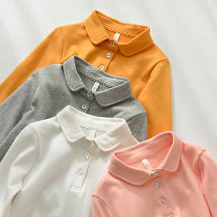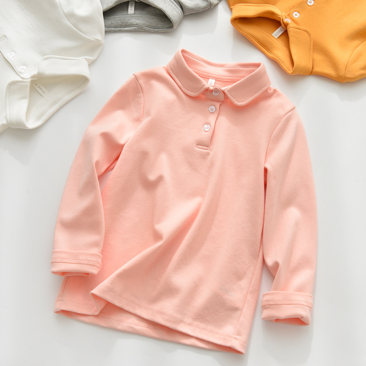 儿童纯棉打底衫 男童女童 POLO翻领全棉长袖纯色T恤 中大童春秋款