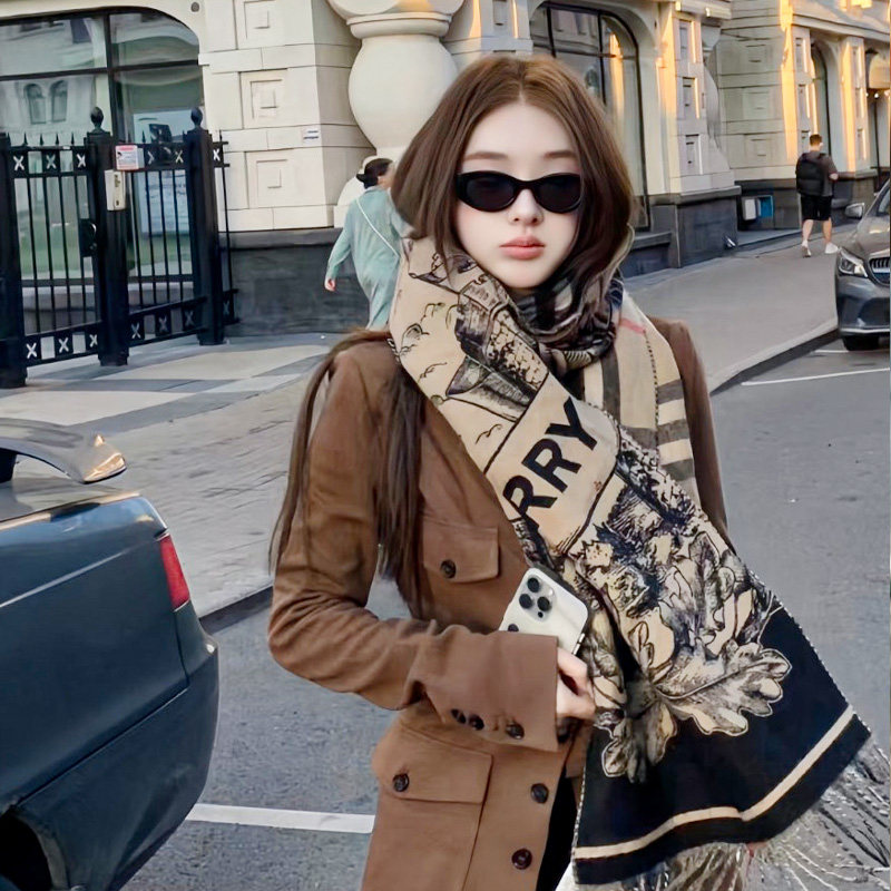 【自营】Burberry/博柏利女款米色双面两用马术骑士徽标羊绒围巾
