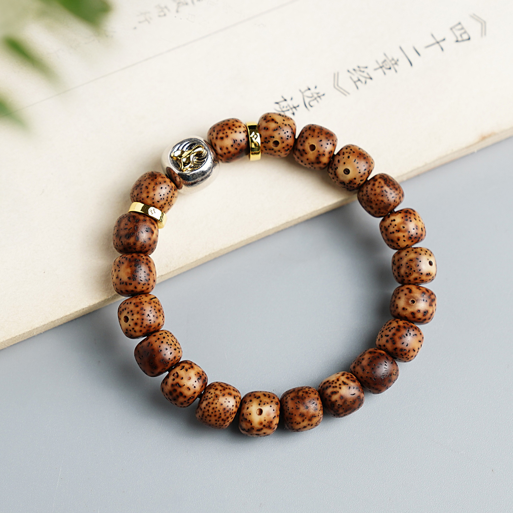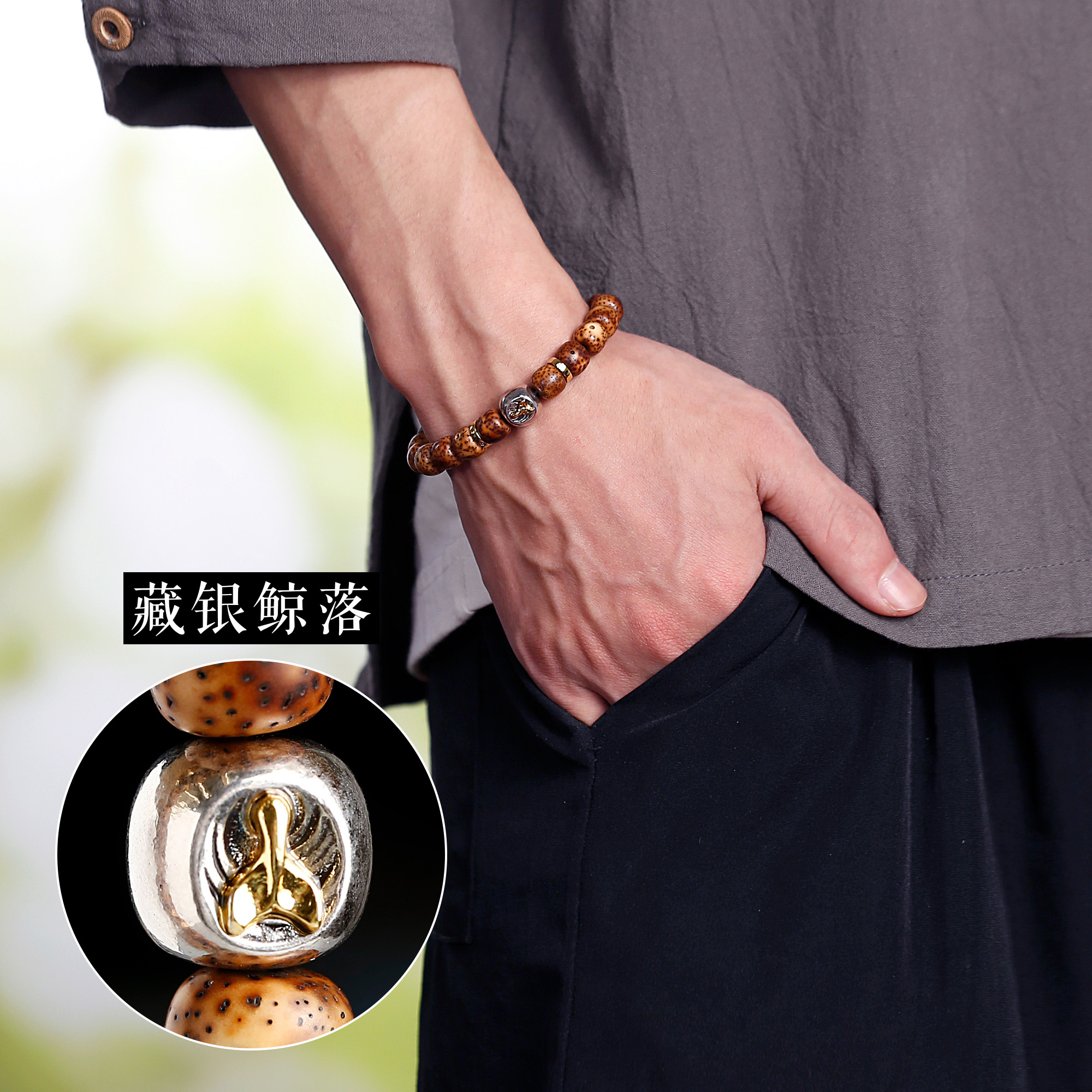 海南陈籽20年星月菩提手串虎皮老料文玩藏银配饰精品盘玩佛珠手链