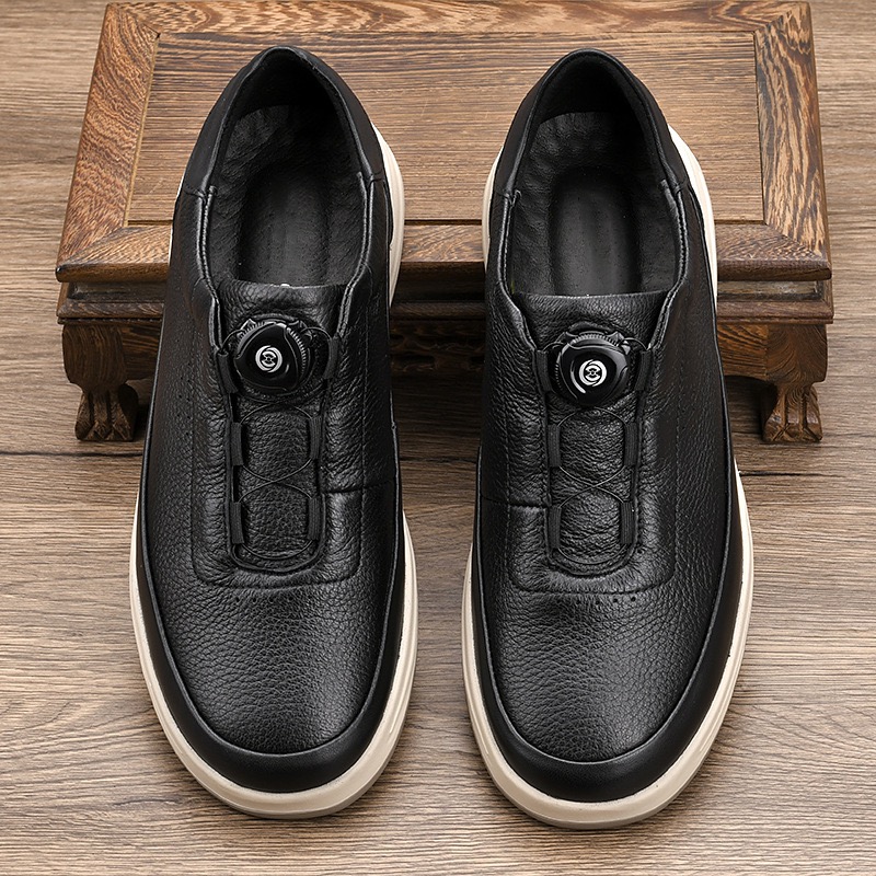 枫之时尚夏季2025旋转扣厚底休闲鞋舒适透气牛皮个性另类男士皮鞋