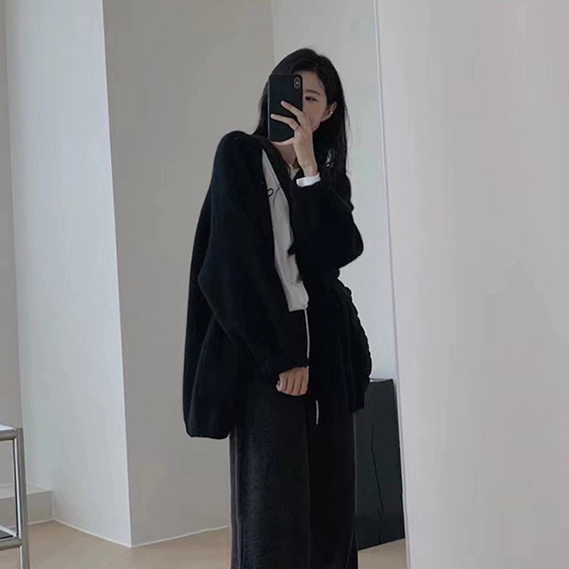 慵懒风中长款毛衣外套开衫上衣厚