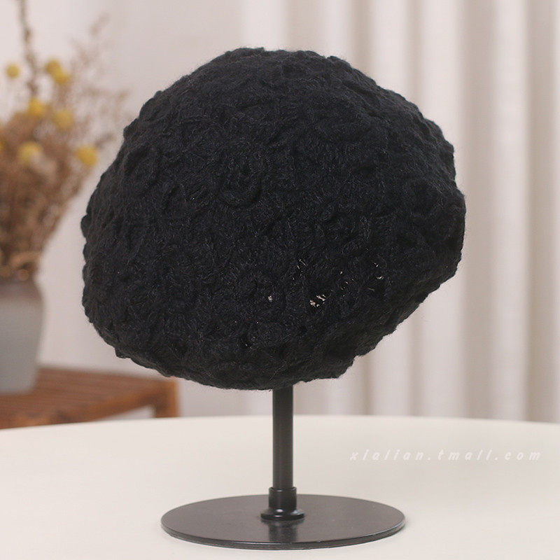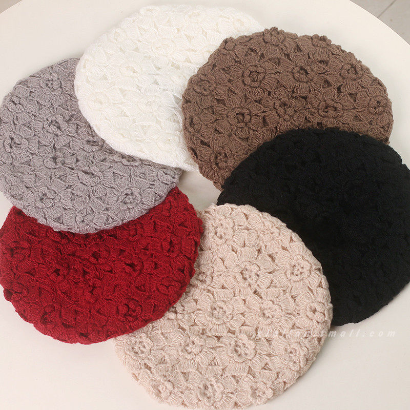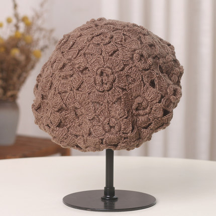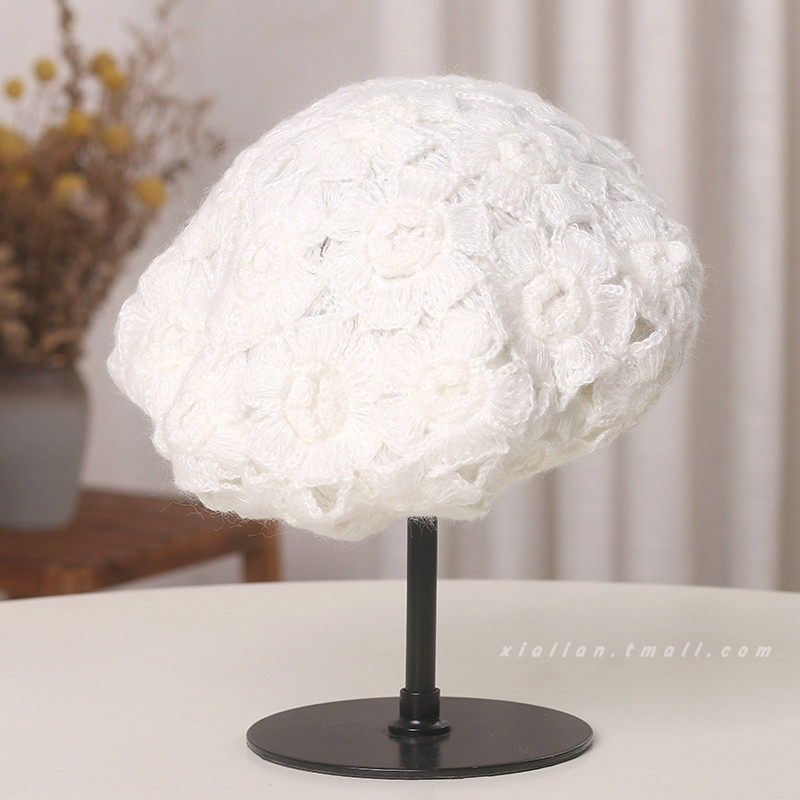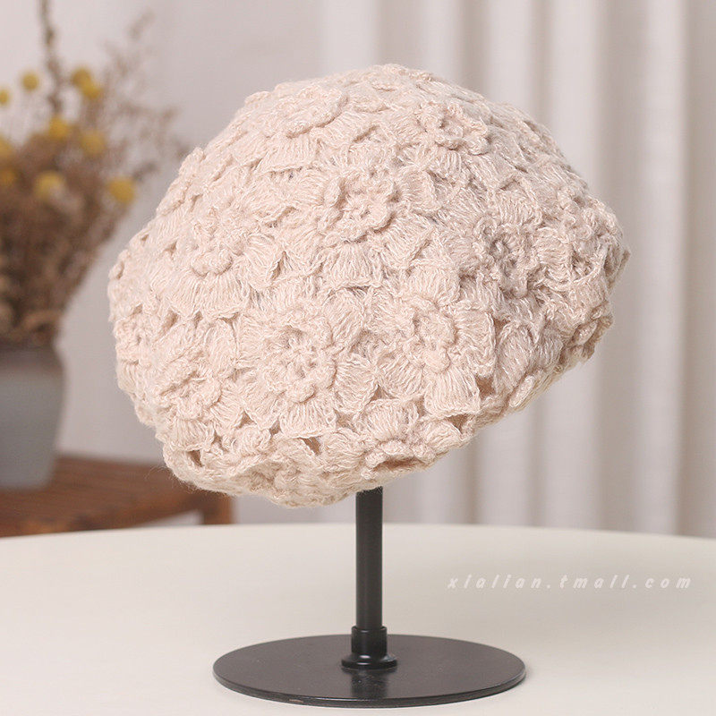 帽子女秋冬季新款立体花朵针织贝雷帽日系小众设计复古毛线画家帽