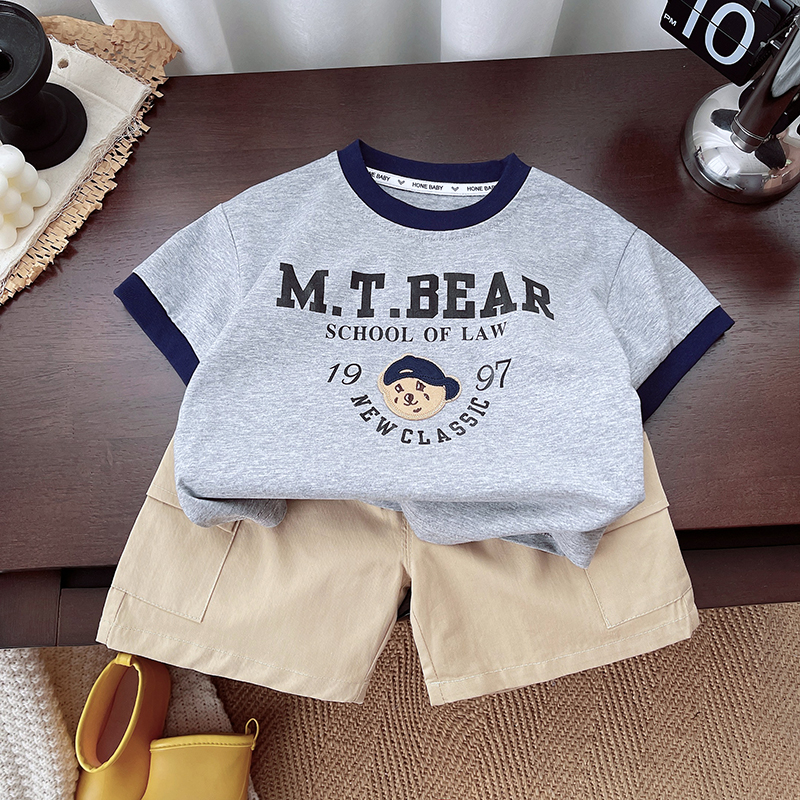 男童短袖夏装套装2025新款儿童卡通可爱小熊衣服宝宝夏季两件套潮