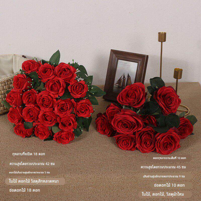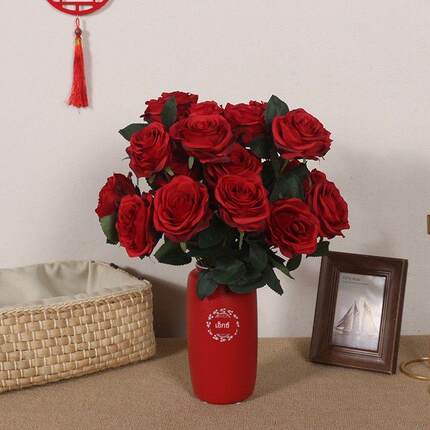 亲迎结婚喜庆婚房布置装饰 18头10头红色彷真玫瑰花束 摆件花假花