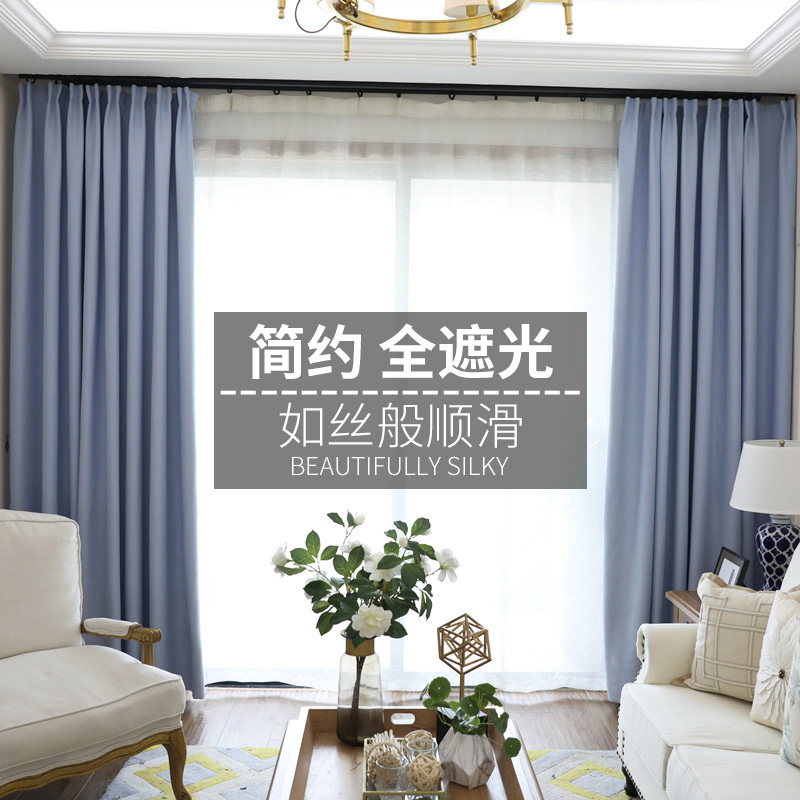 全遮光窗帘布料成品纯色简约现代客厅卧室飘窗落地窗遮阳隔热窗帘