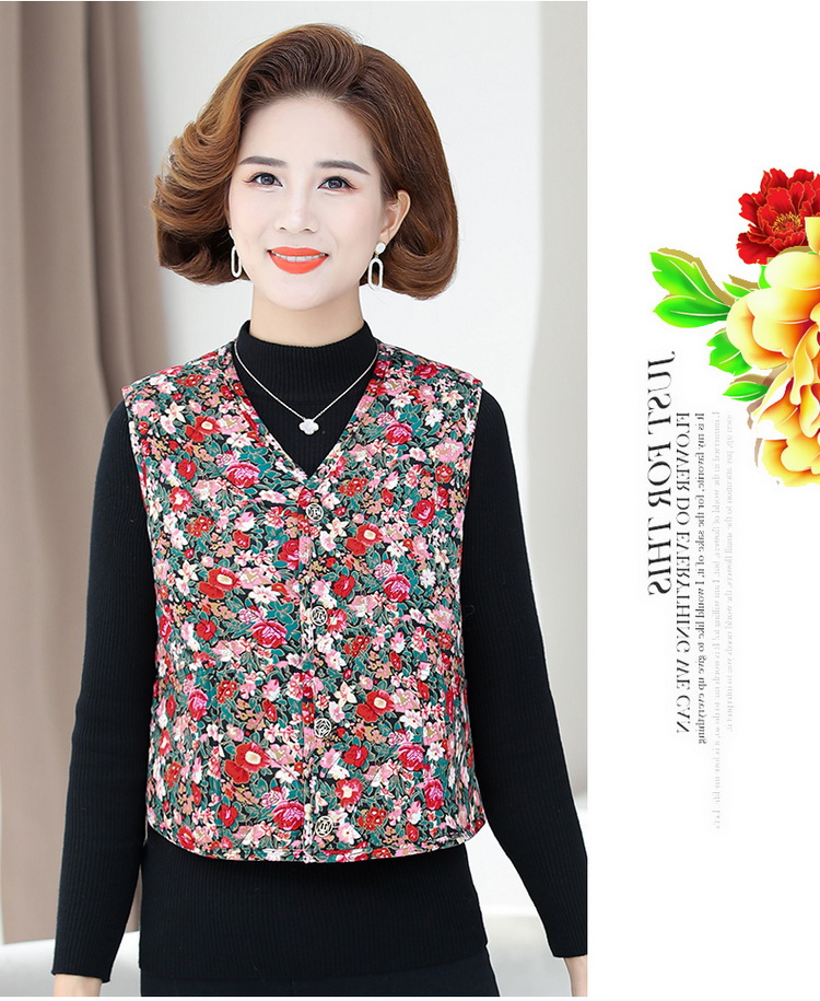 纯棉马甲女秋冬季加厚保暖坎肩中老年妈妈大码碎花内外穿夹棉背心