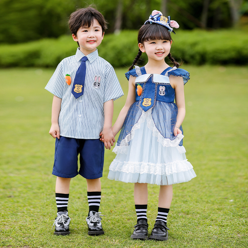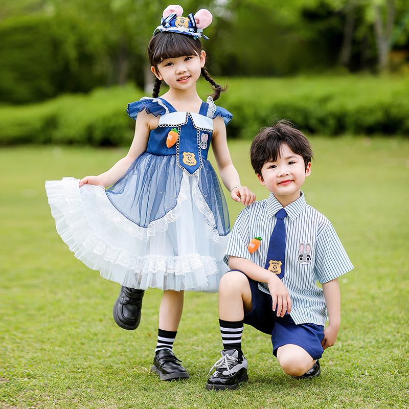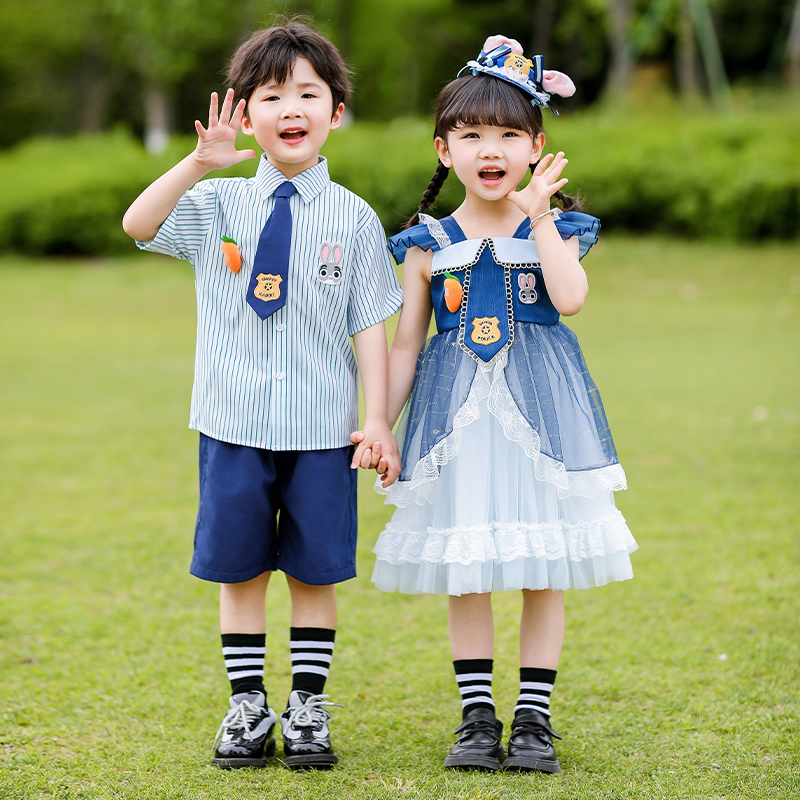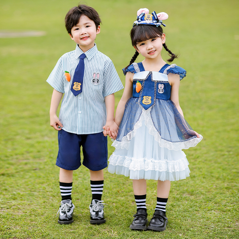 女童连衣裙夏装25新款兔子警官衣服男童夏季学院风六一儿童表演服