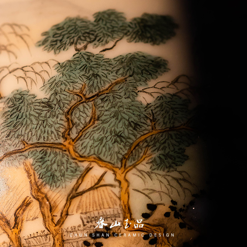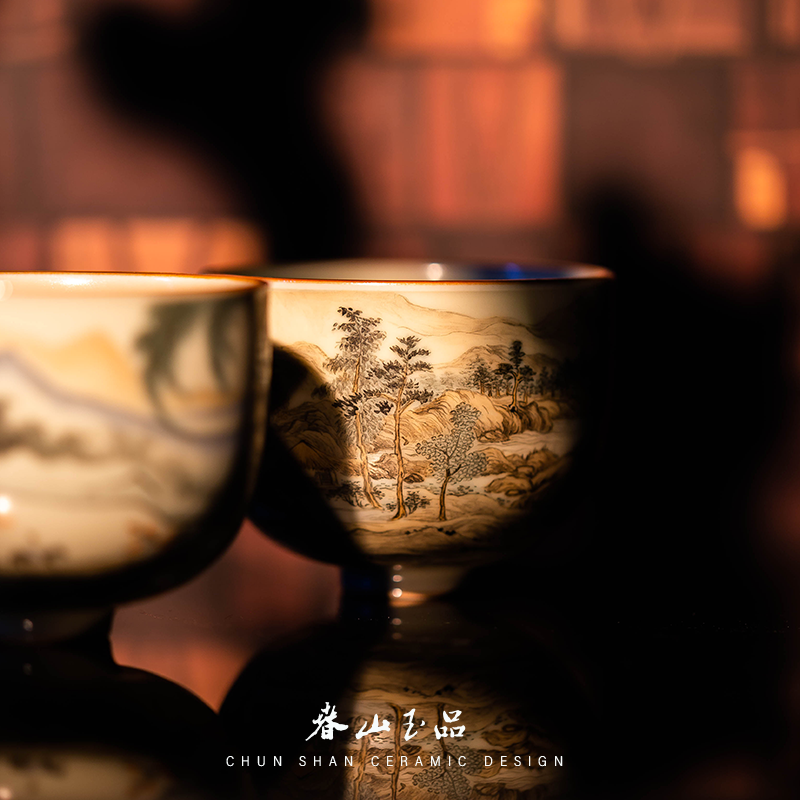 上新春山玉品 刘松山水原创手绘宣和杯釉上彩景德镇