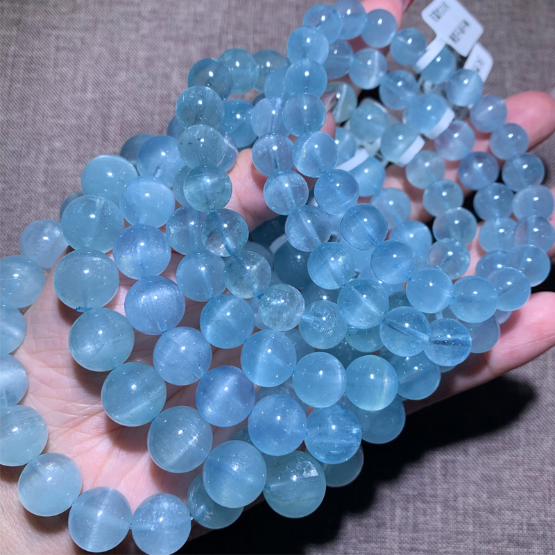 天然巴西猫眼海蓝宝手链礼物男女
