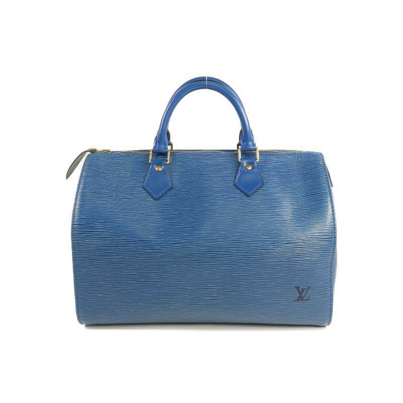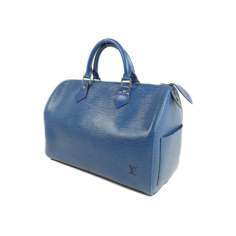 中古LV路易威登女包B级9新Speedy枕头包牛皮手提包蓝色