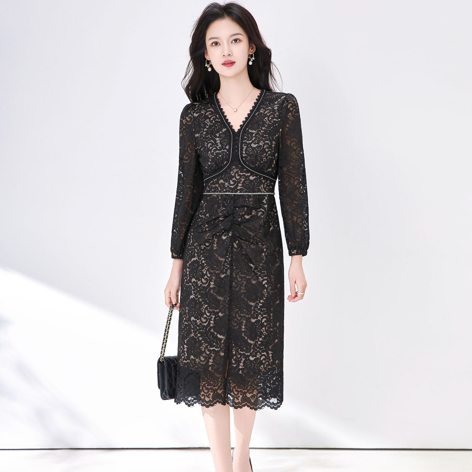 迪奥巨好看法式连衣裙女25早秋新款轻熟风女人味蕾丝裙高级感裙子