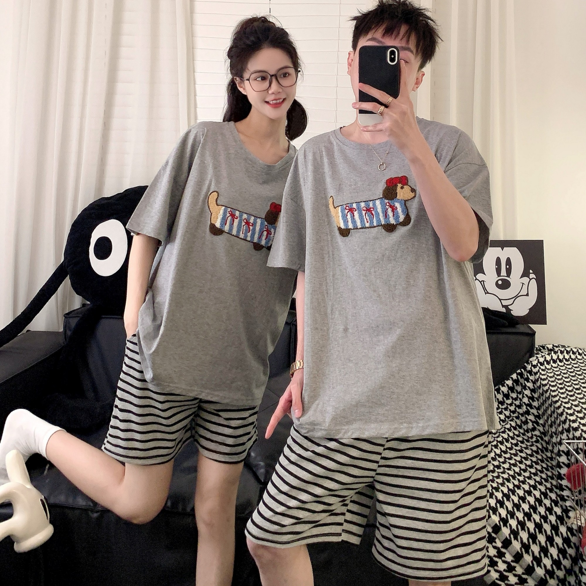 情侣睡衣夏季薄款纯棉短袖套装