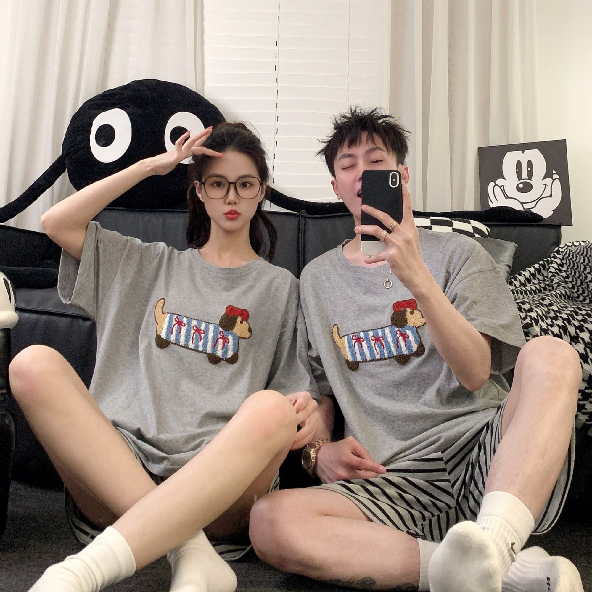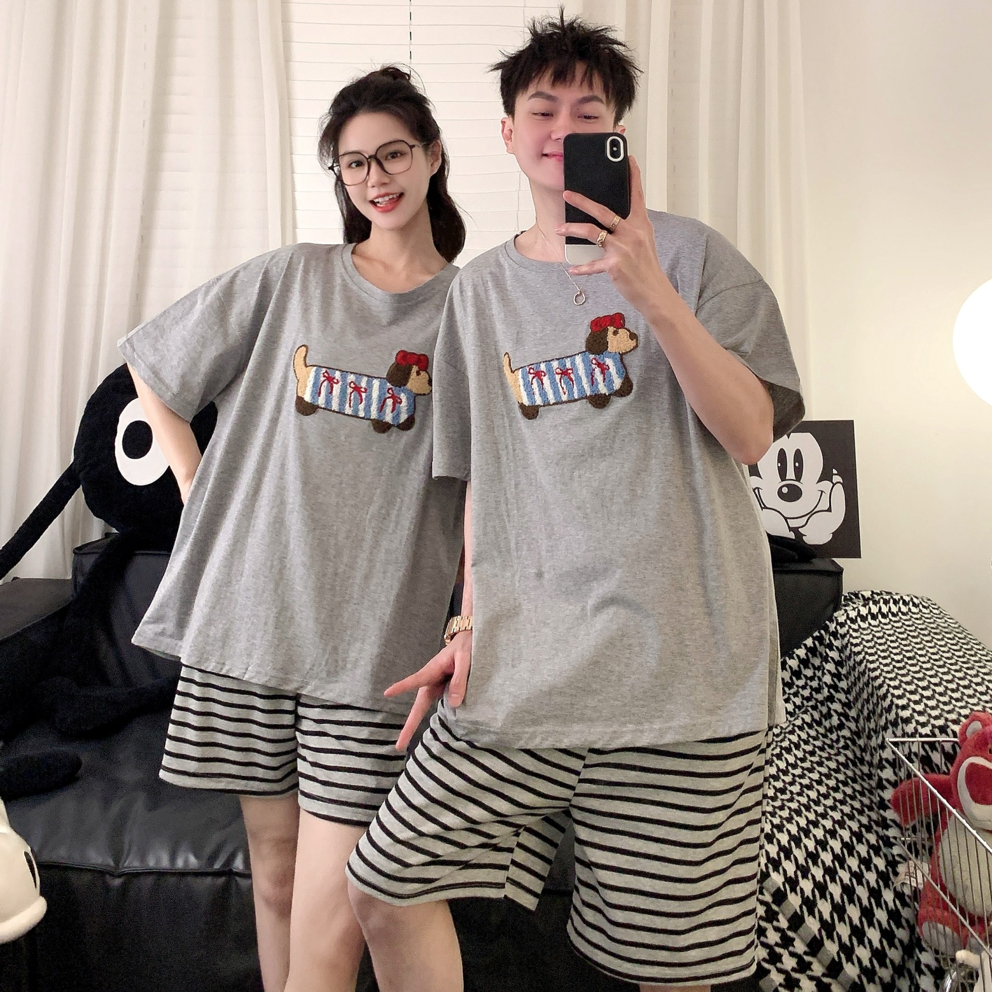 情侣睡衣夏季薄款纯棉短袖套装卡通可爱2025超火新款男女士家居服