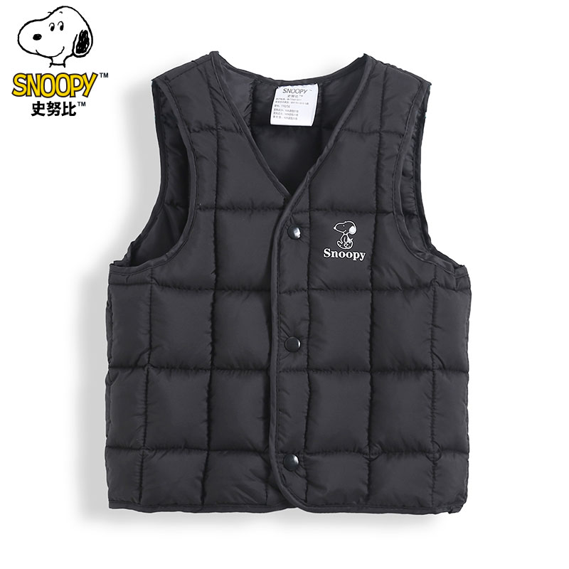 史努比黑色棉马甲秋冬季2024新款儿童马夹中大童装洋气外穿背心潮