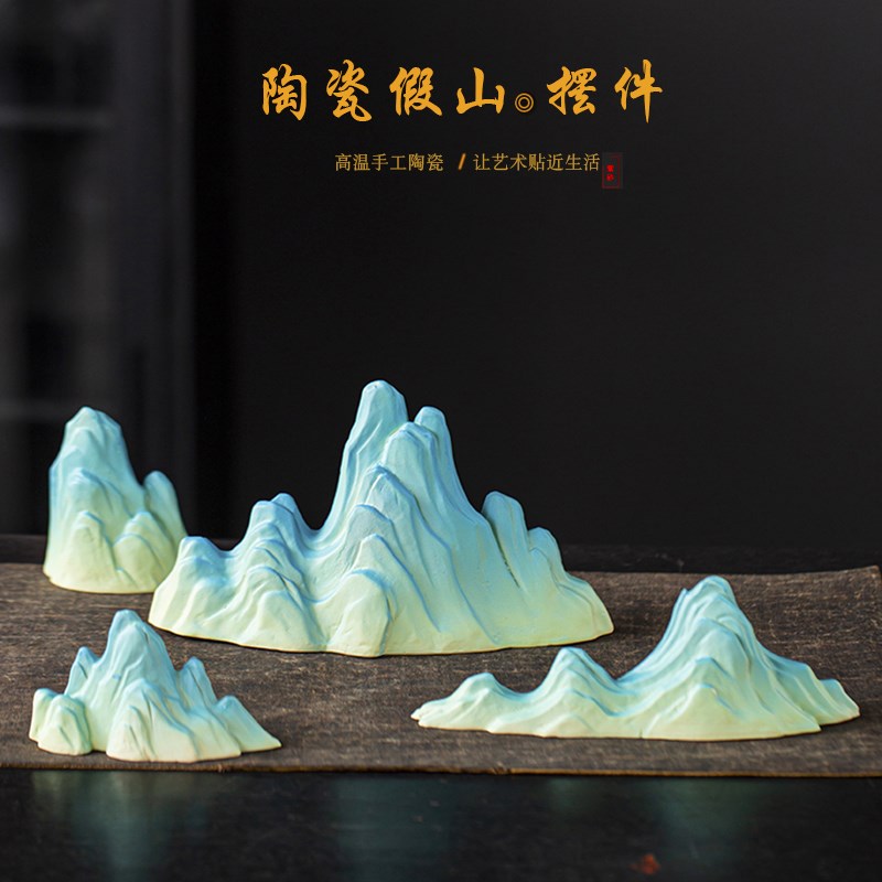 创意中式陶瓷假山微景观客厅电视柜玄关假山鱼缸水族造景装饰品
