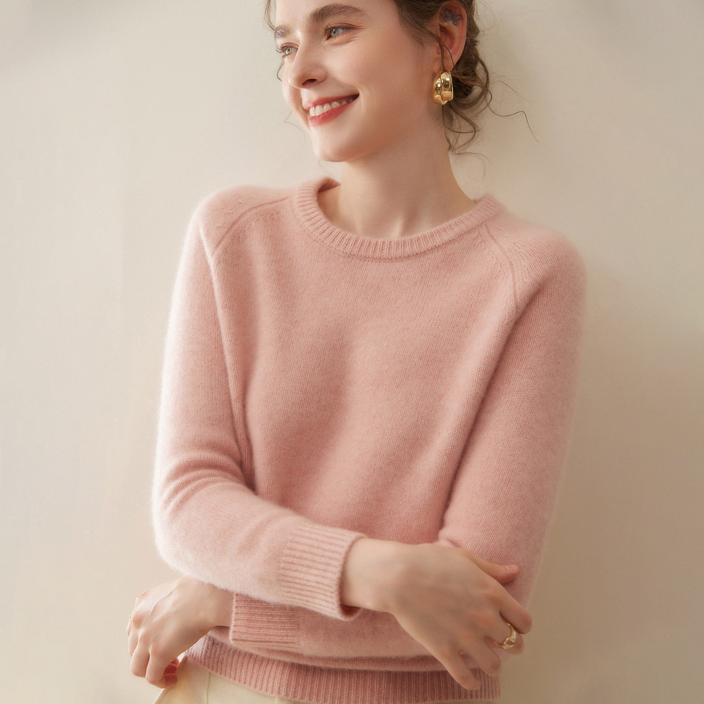 重磅三股加厚圆领套头女毛衣100%纯山羊绒衫修身针织内搭打底衫冬