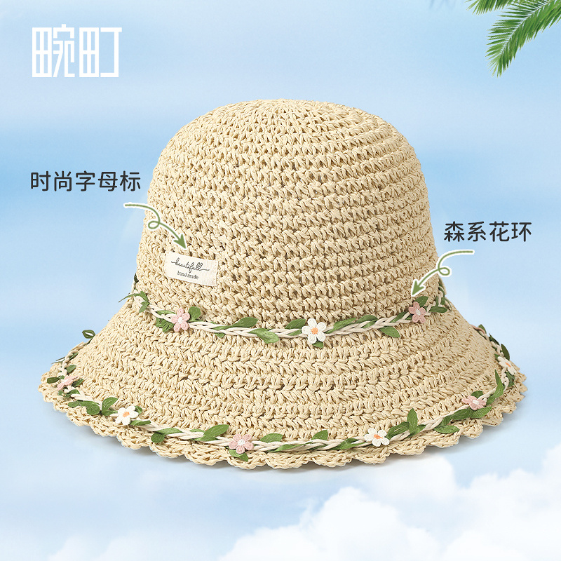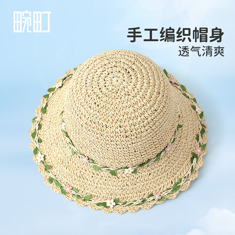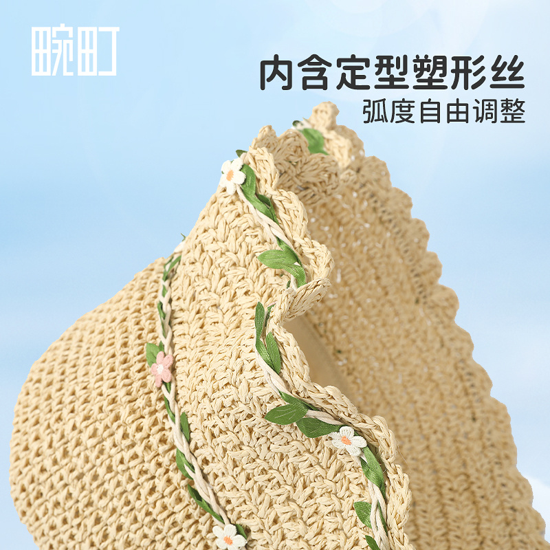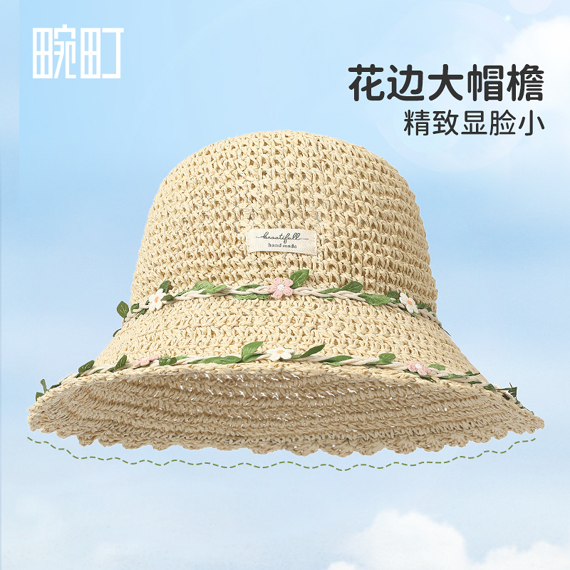 畹町海边度假草编帽女夏季出游遮太阳沙滩帽子田园风花卉条编织帽