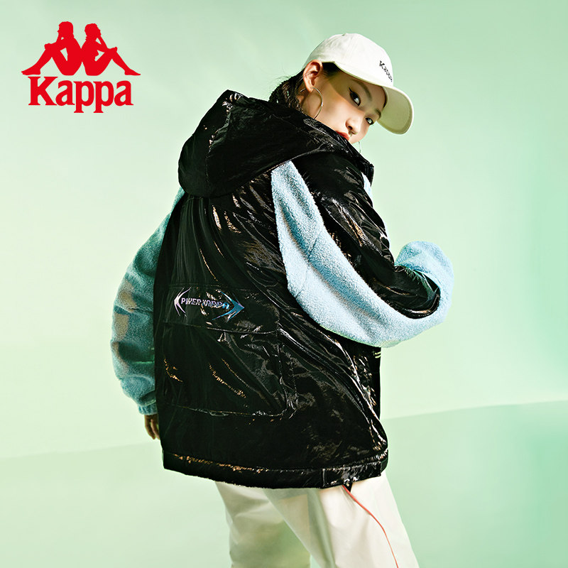 Kappa卡帕男女羊羔绒拼接外套秋冬新款玩家系列电音开身帽衫