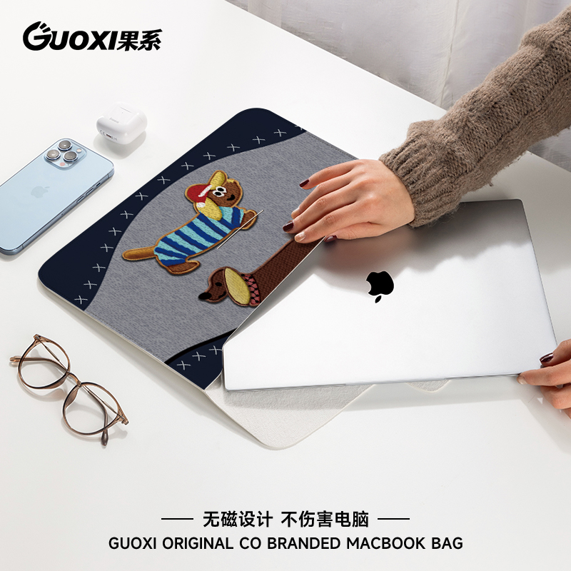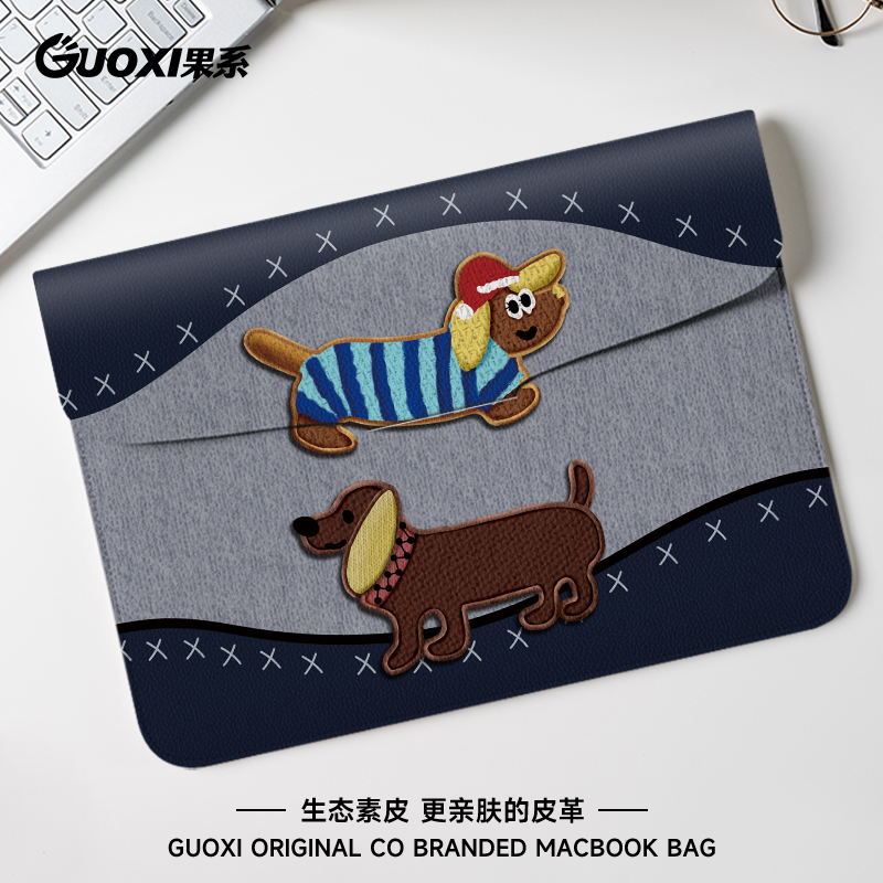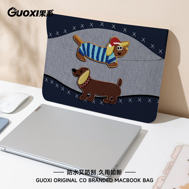 GUOXI腊肠小狗笔记本电脑包适用于华为matebook14寸保护套联想小新pro16苹果macbook15.6翻盖平板内胆包12寸