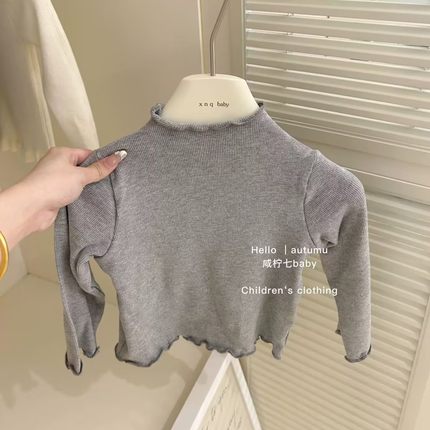 3女童纯棉打底衫2026秋冬装新款宝宝半高领上衣儿童一体绒长袖T恤