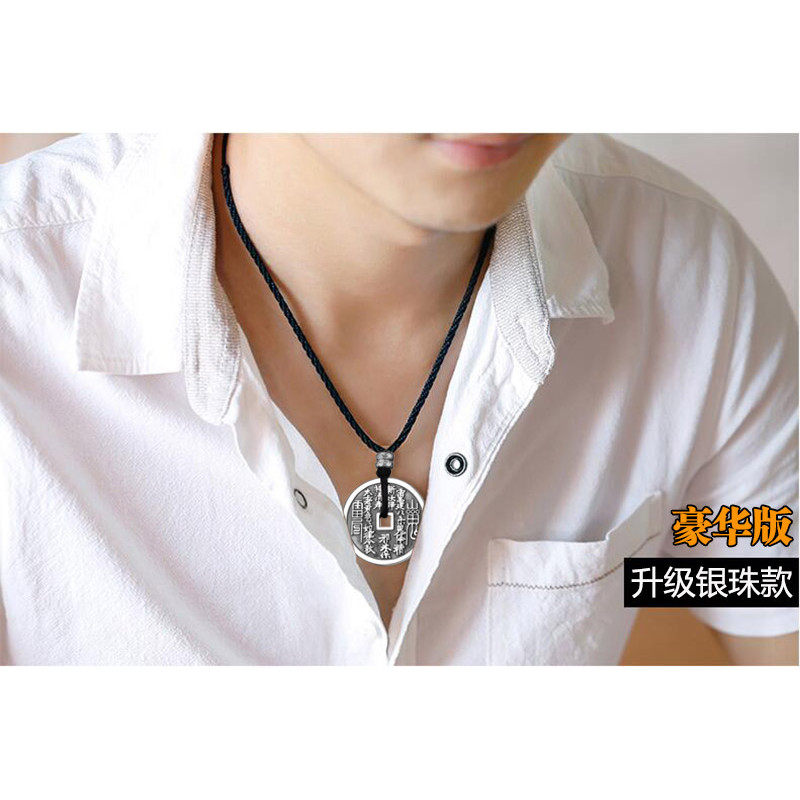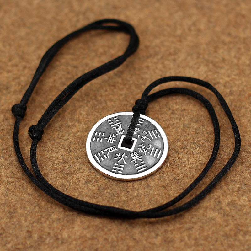 山鬼花钱足银999吊坠男女士项链zhu砂八卦钱币平安扣挂坠守护礼物