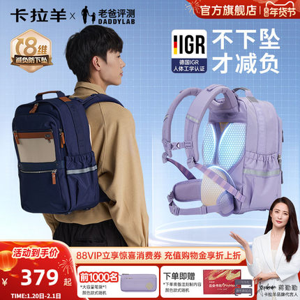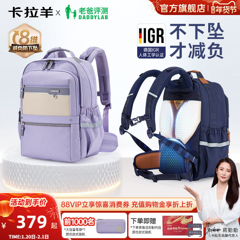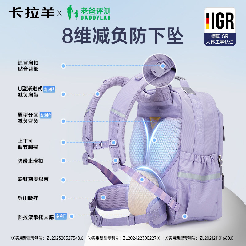 【老爸评测*卡拉羊】卡拉羊中学生云朵书包8维减负防下坠男初中女