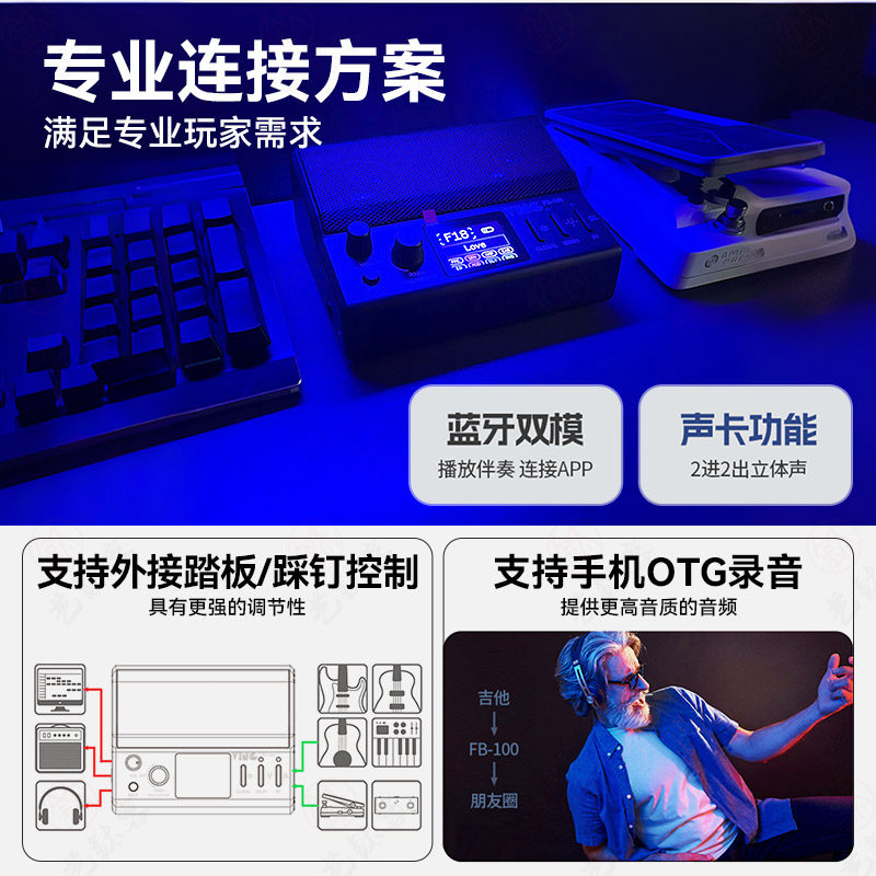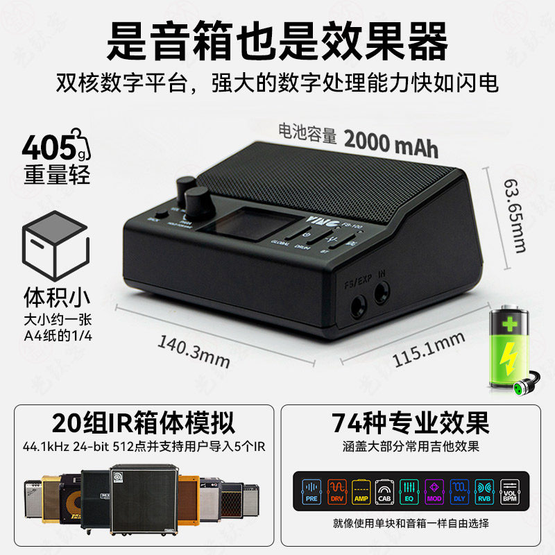 Ving FB100电吉他音箱综合效果器蓝牙便携户外演出专用充电小音响