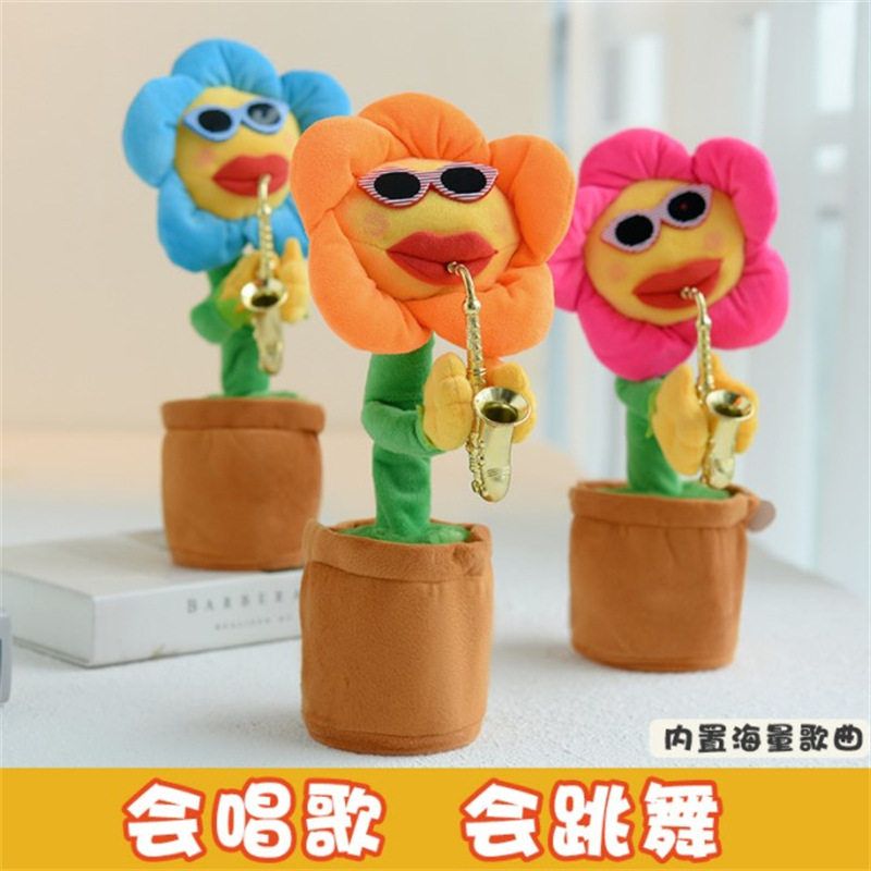 妖娆太阳花电动向日葵会唱歌跳舞可录音学说话毛绒玩具