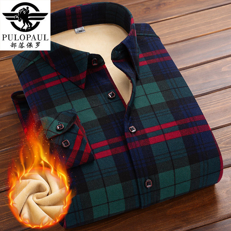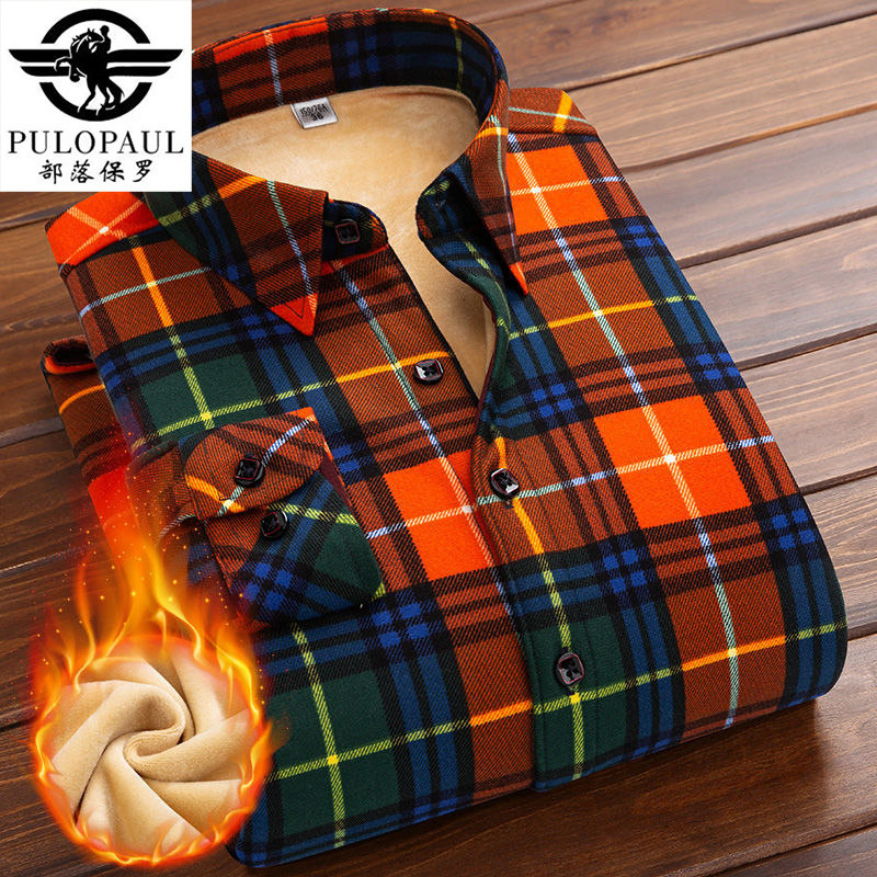 【加绒加厚】部落保罗冬季女保暖一体绒衬衫长袖格子休闲女士棉衣