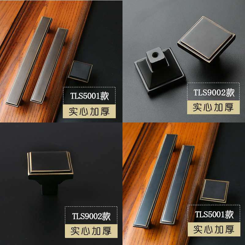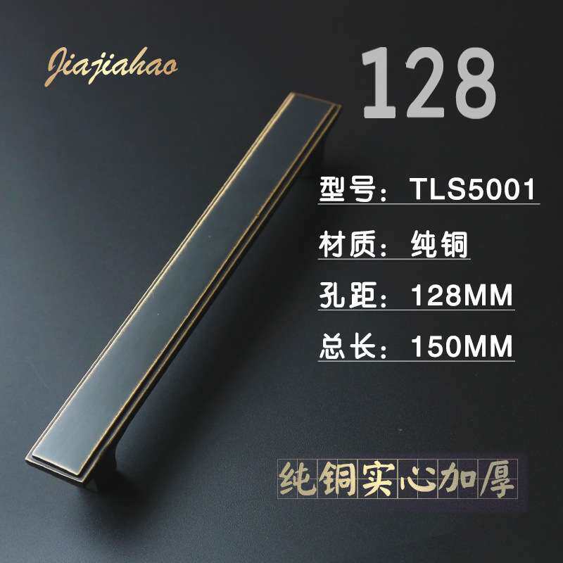 现代简约橱柜衣柜把手抽屉黑色纯铜柜门拉手