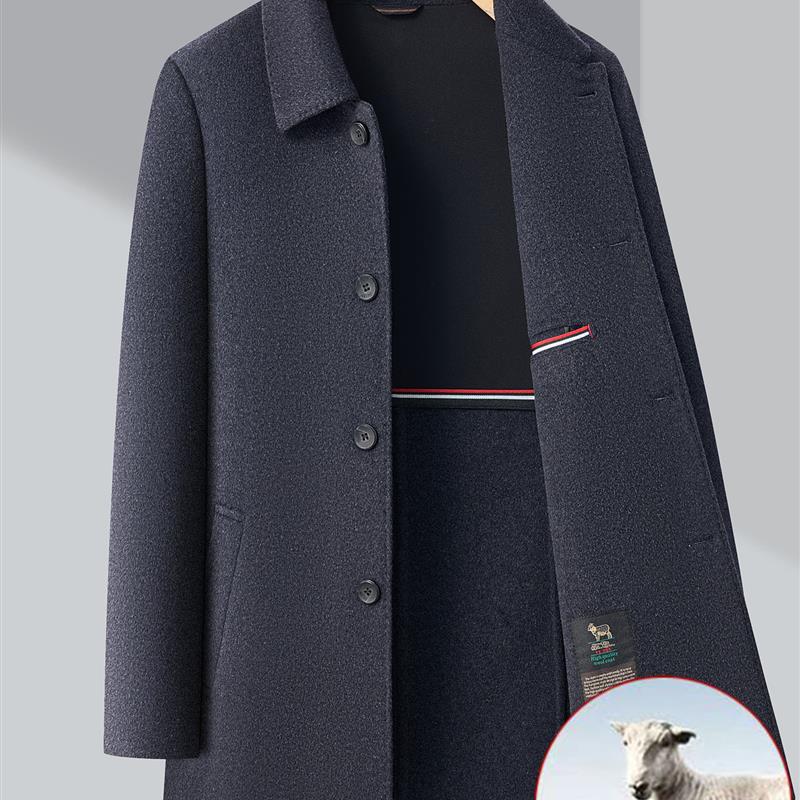 恒源祥高端双面羊毛呢子大衣男士冬季翻领爸爸装加厚保暖休闲外套