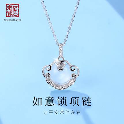 老银匠s925纯银如意平安锁项链女高级感长命银锁送女友情人节礼物