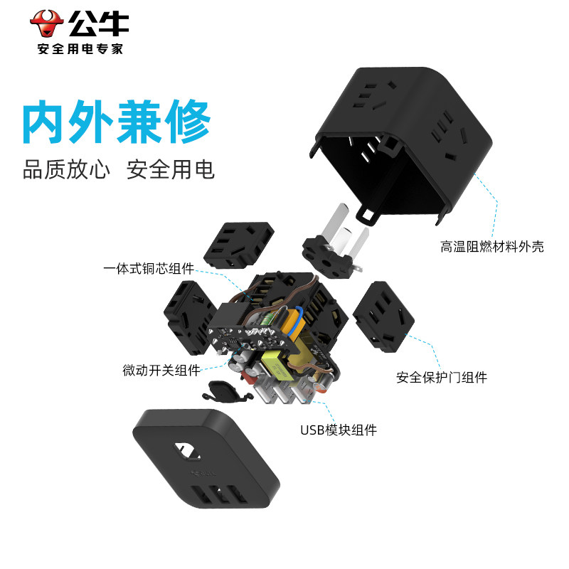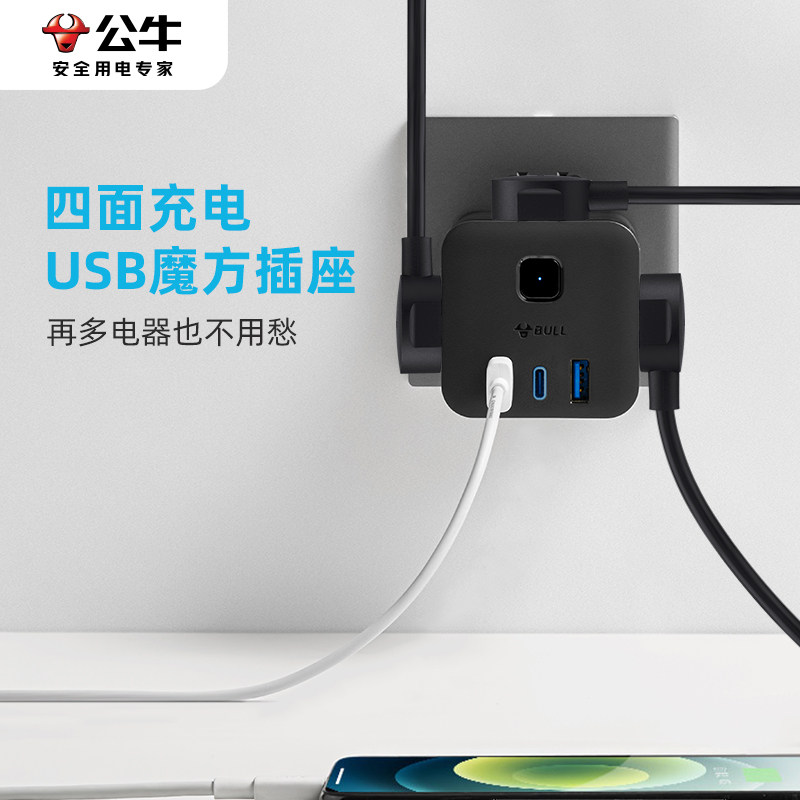 公牛桌面充电插座转换器usb快充
