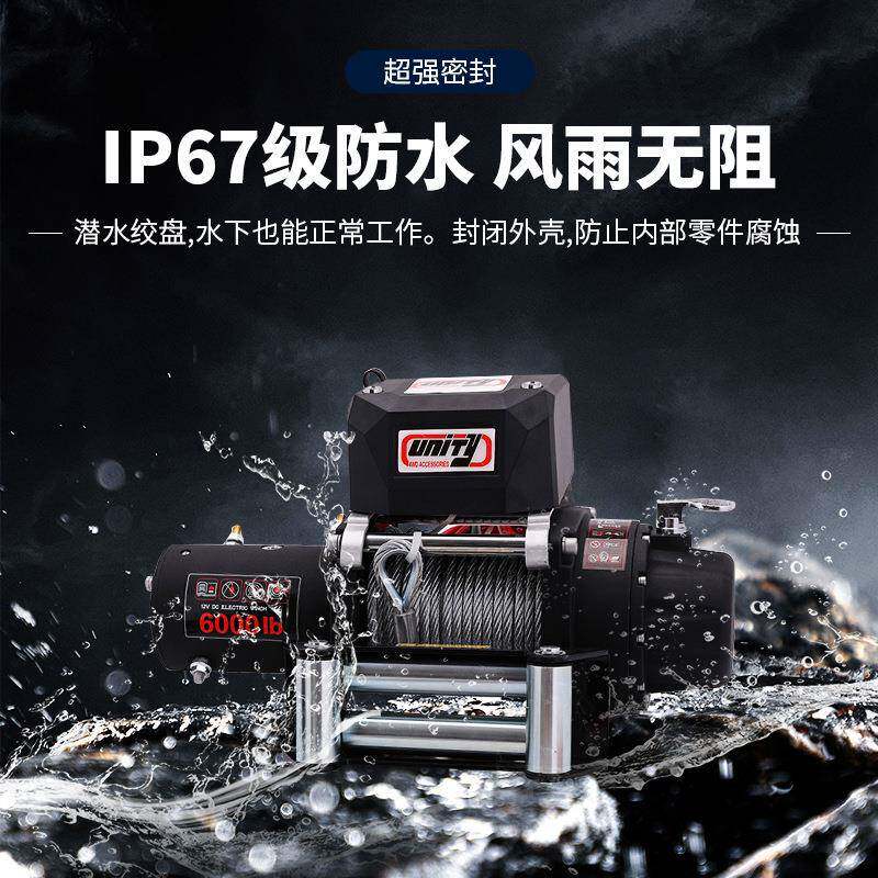 6000磅钢丝绳电动绞盘12V电机越野车脱困牵引绞盘winch配无线遥控