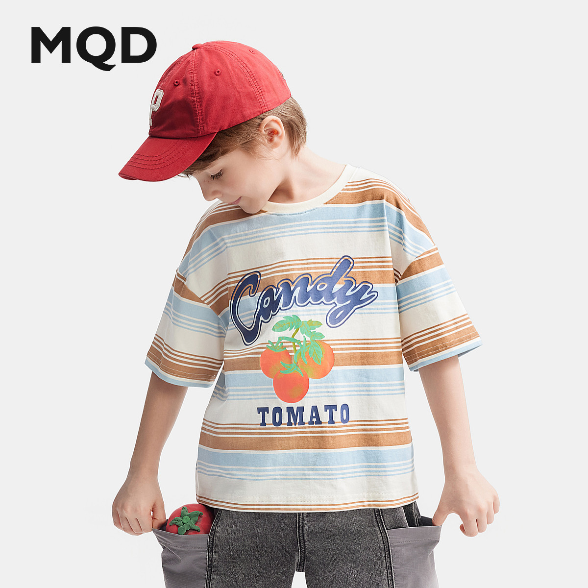 清仓MQD童装男童纯棉条纹短袖T恤25夏装儿童男大童印花体恤宽松