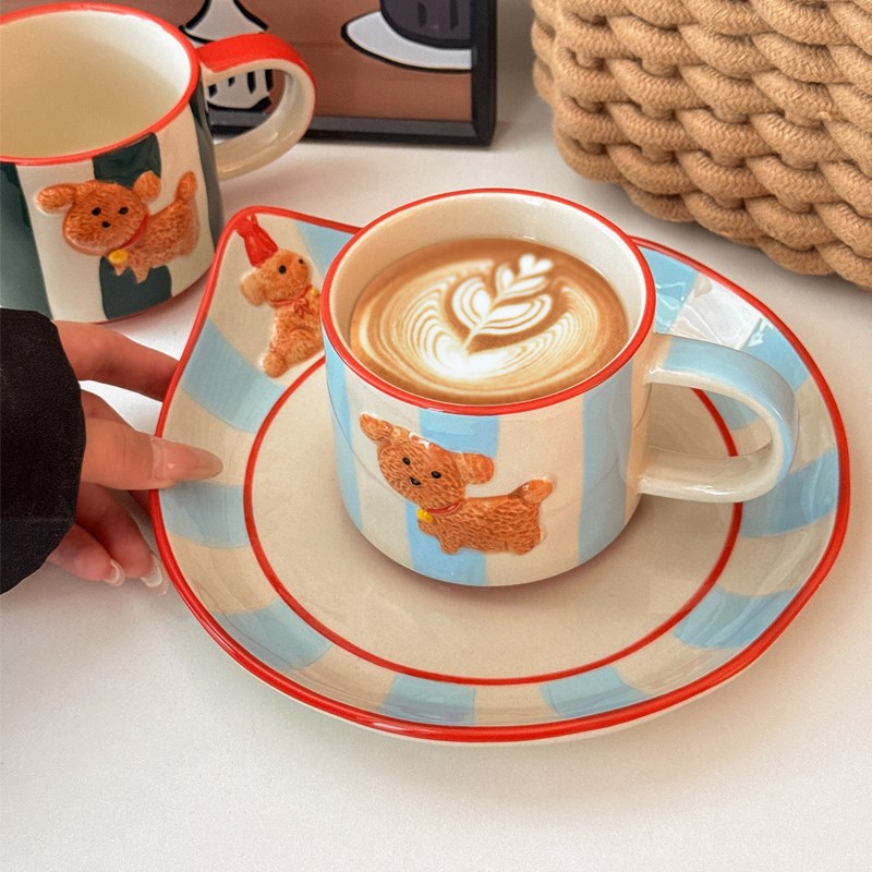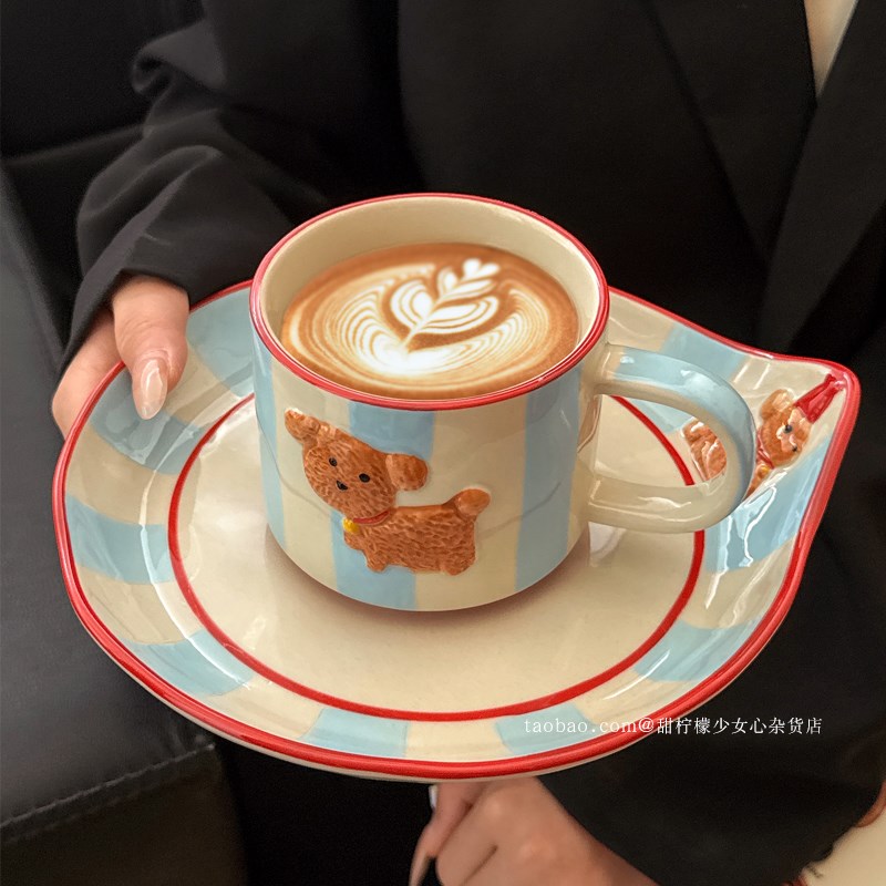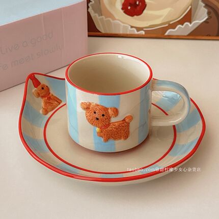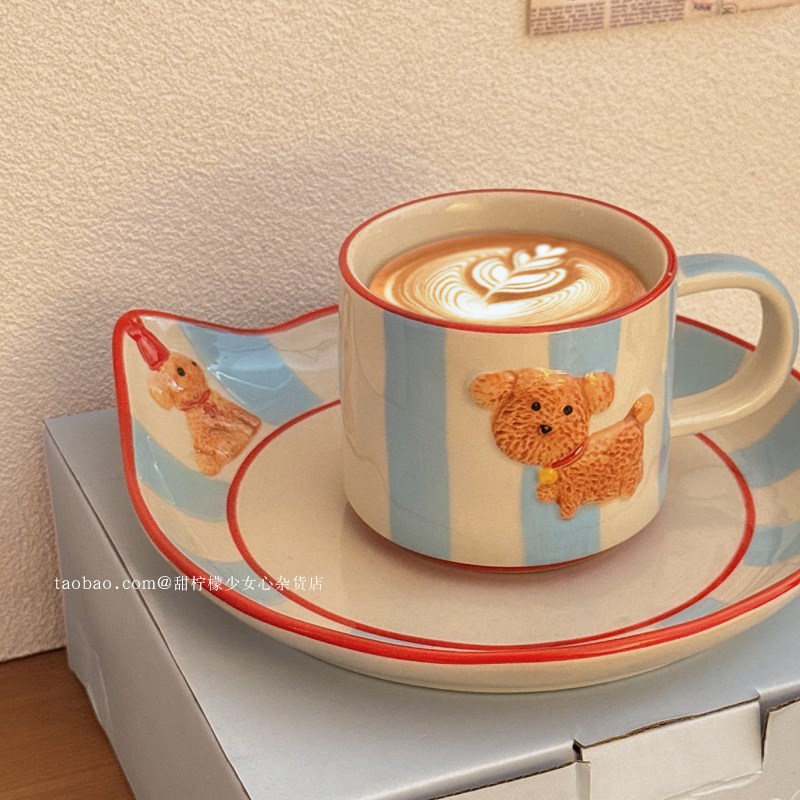 速发杯子马克杯陶瓷杯可爱小狗餐具套装咖啡杯生日礼物生高级感轻