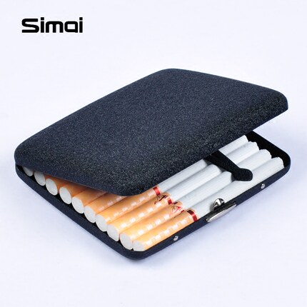 高档男士20支装超薄金属黑色磨砂烟盒不锈钢个性翻盖香於自动烟夹