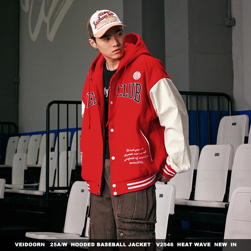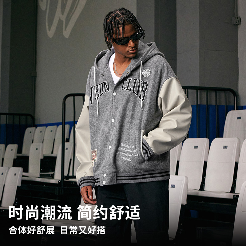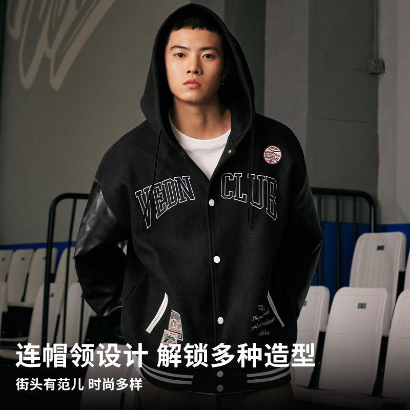 维动美式棒球服男款秋季新款运动宽松休闲青少年连帽飞行夹克外套