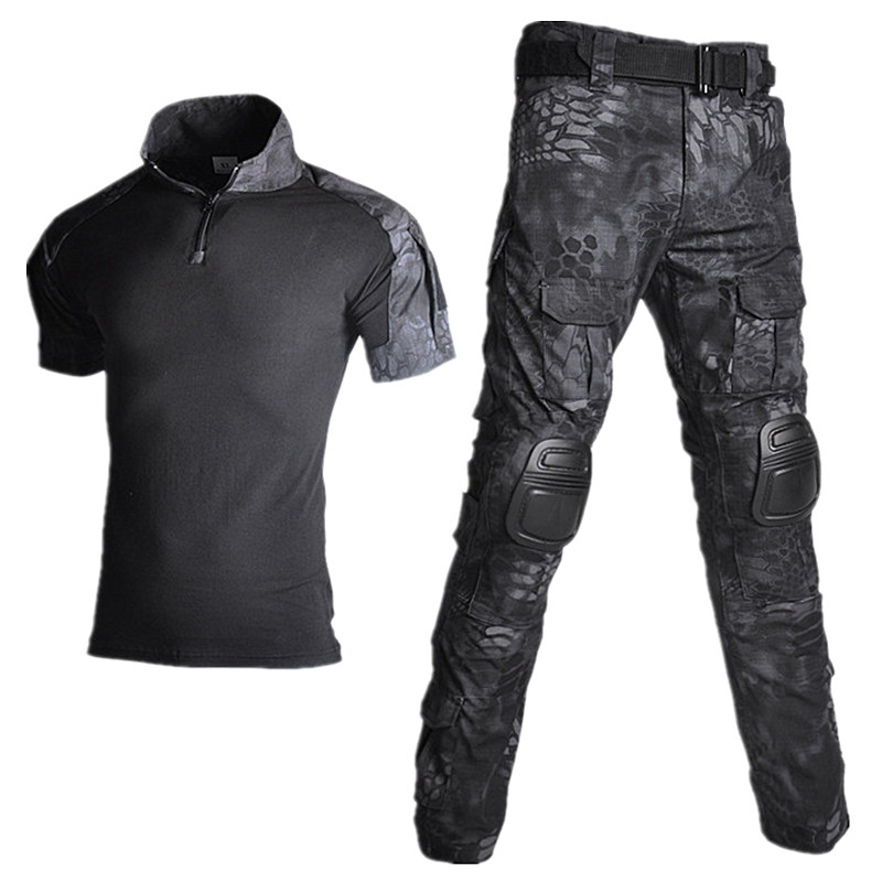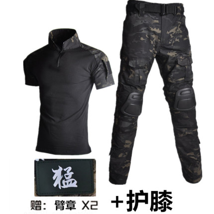 夏季男户外男装战术军迷彩短袖套装登山服青蛙裤半袖修身透气耐磨