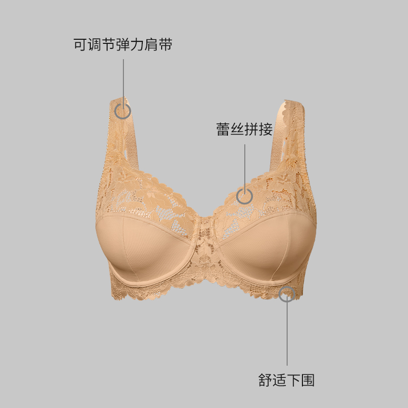 YQMJ蕾丝大码内衣女士性感薄款舒适透气软钢圈无胸垫胖mm文胸罩