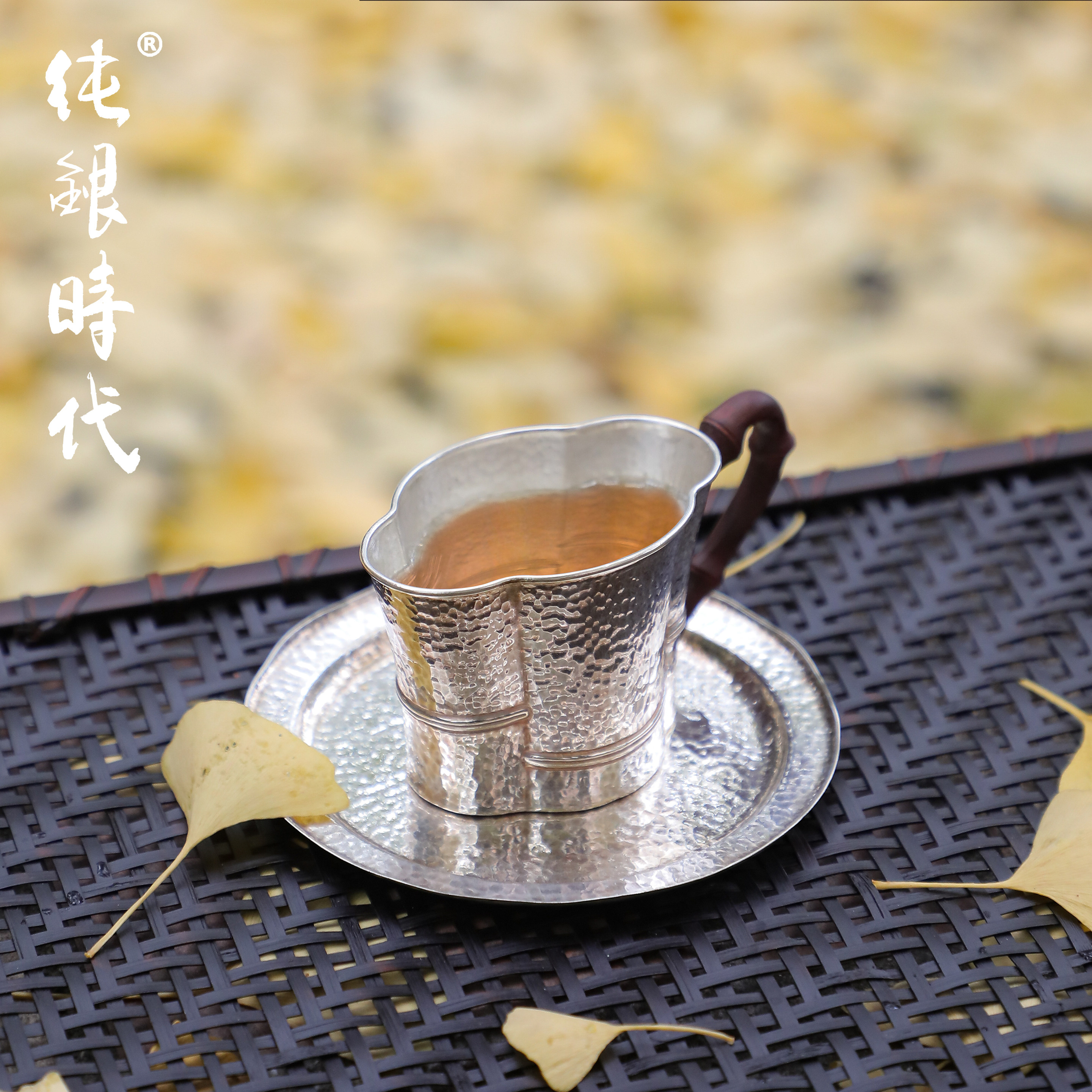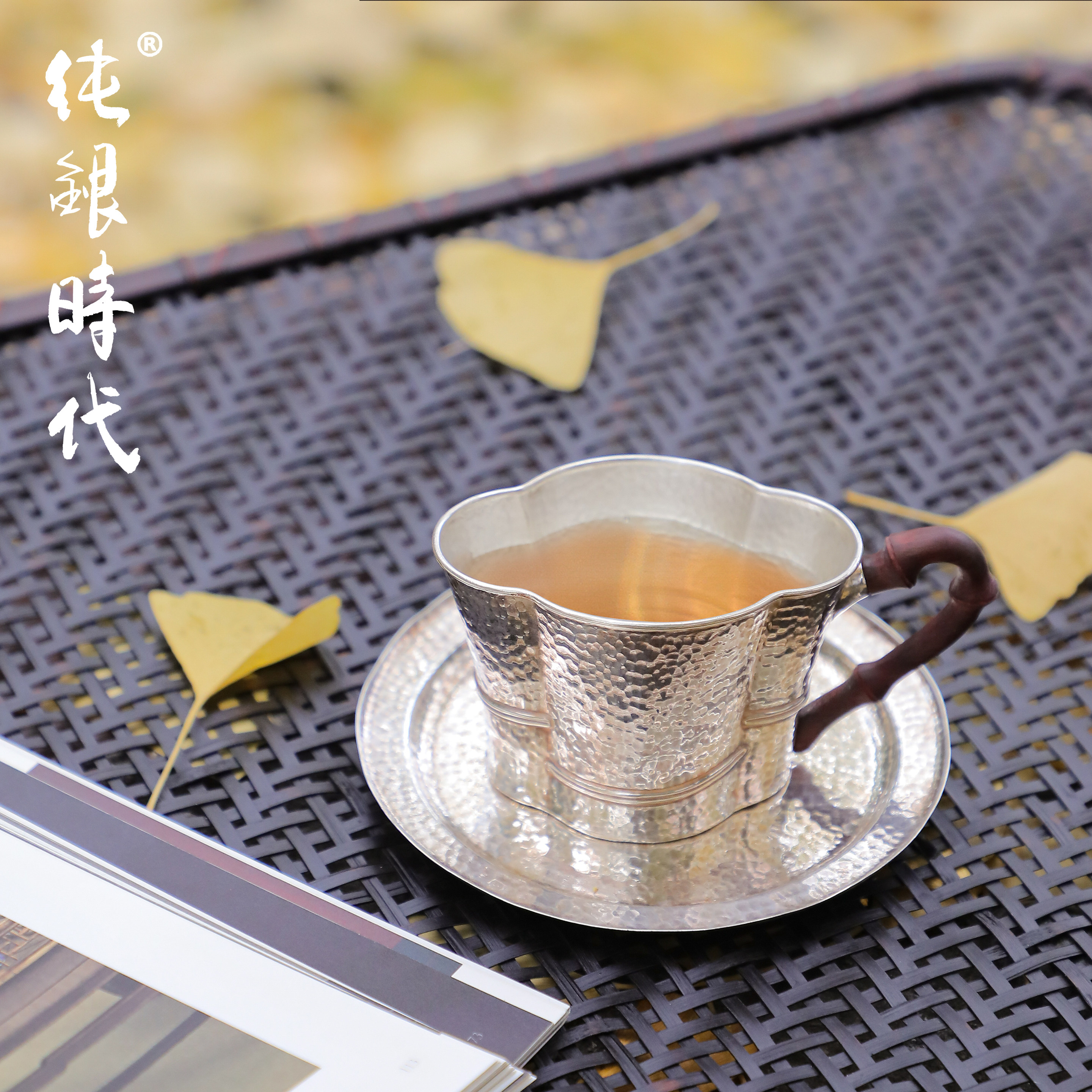 纯银时代 竹节茶杯纯银999手工一张银打品茗杯仿生高端咖啡杯90ml