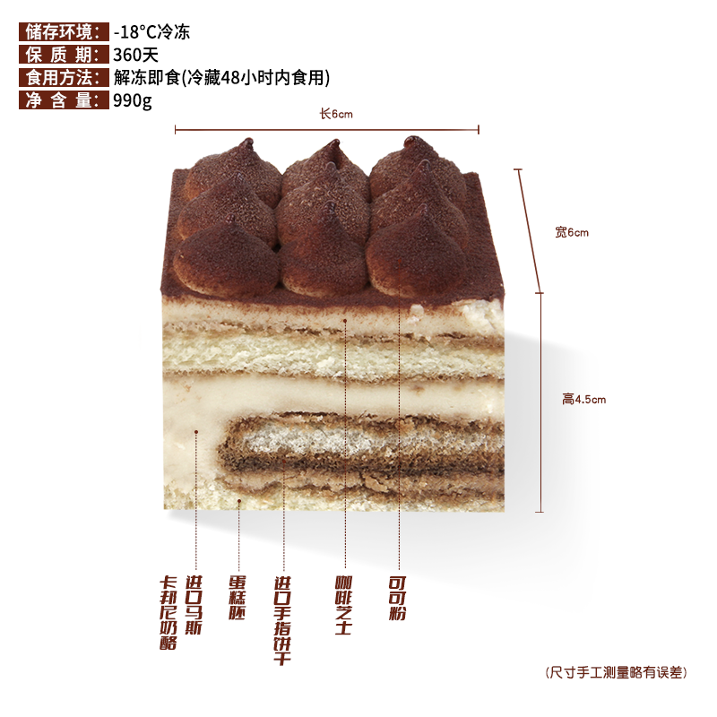 馥斓思薇方形提拉米苏蛋糕动物奶油冷冻商用西点咖啡店半成品甜品