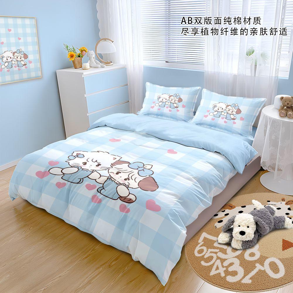 2024mikko纯棉床上四件套卡通可爱印花被套小清新学生宿舍床单三