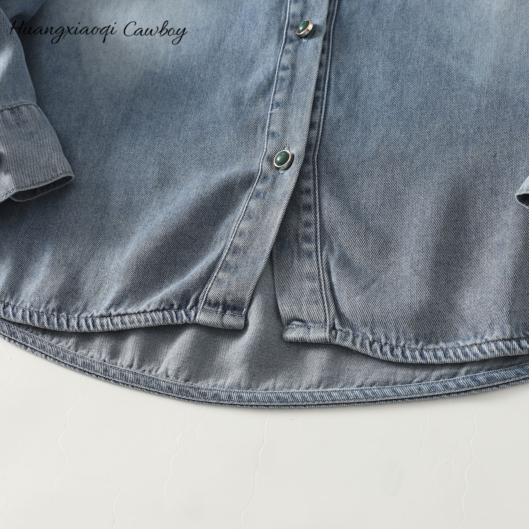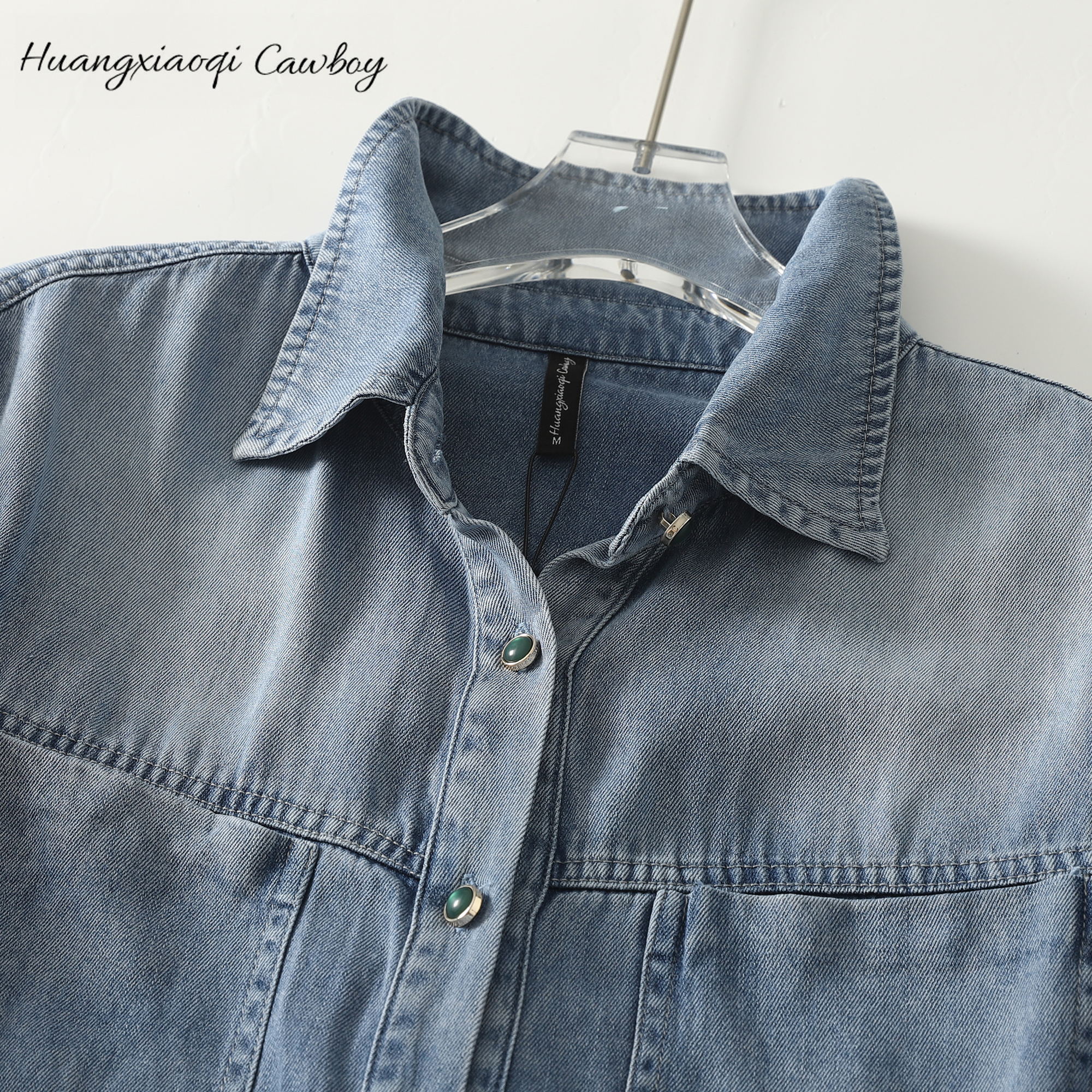 Huangxiaoqi Cowboy新款蚕丝牛仔衬衫女显瘦长袖垂感百搭叠穿上衣