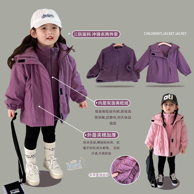 女童加厚冲锋衣儿童秋冬外套女宝宝套装三合一加绒防风棉衣两