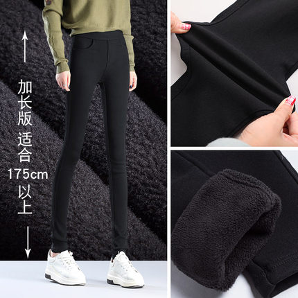 加绒加长打底裤女高个子秋冬外穿加厚高腰黑色175加长版小脚黑裤