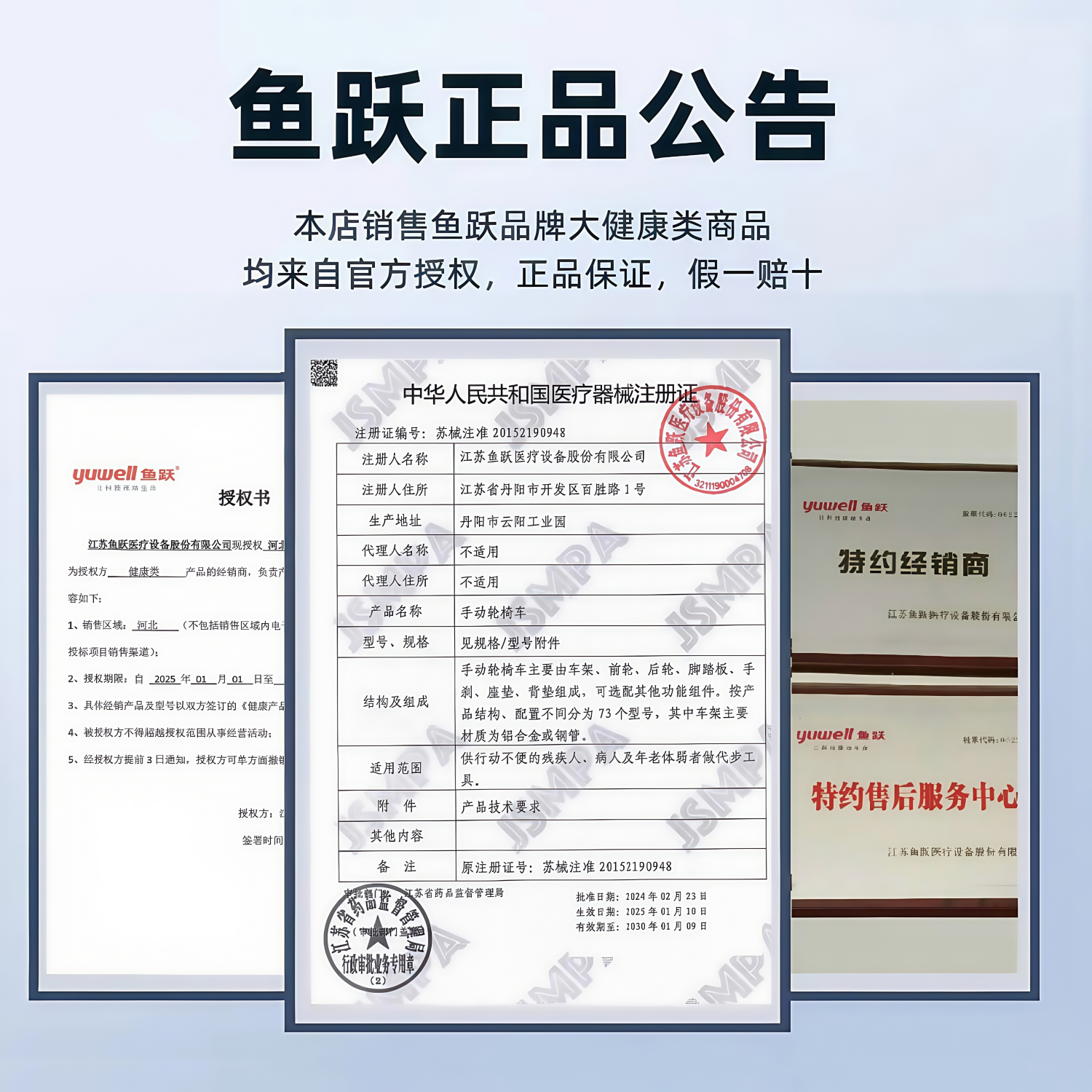 鱼跃轮椅H005老人折叠轻便软座手动代步车残疾人加宽手推车充气胎