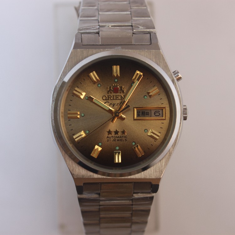 日本手表东方双狮全自动机械表三星茶色九十年代库存防水双日历