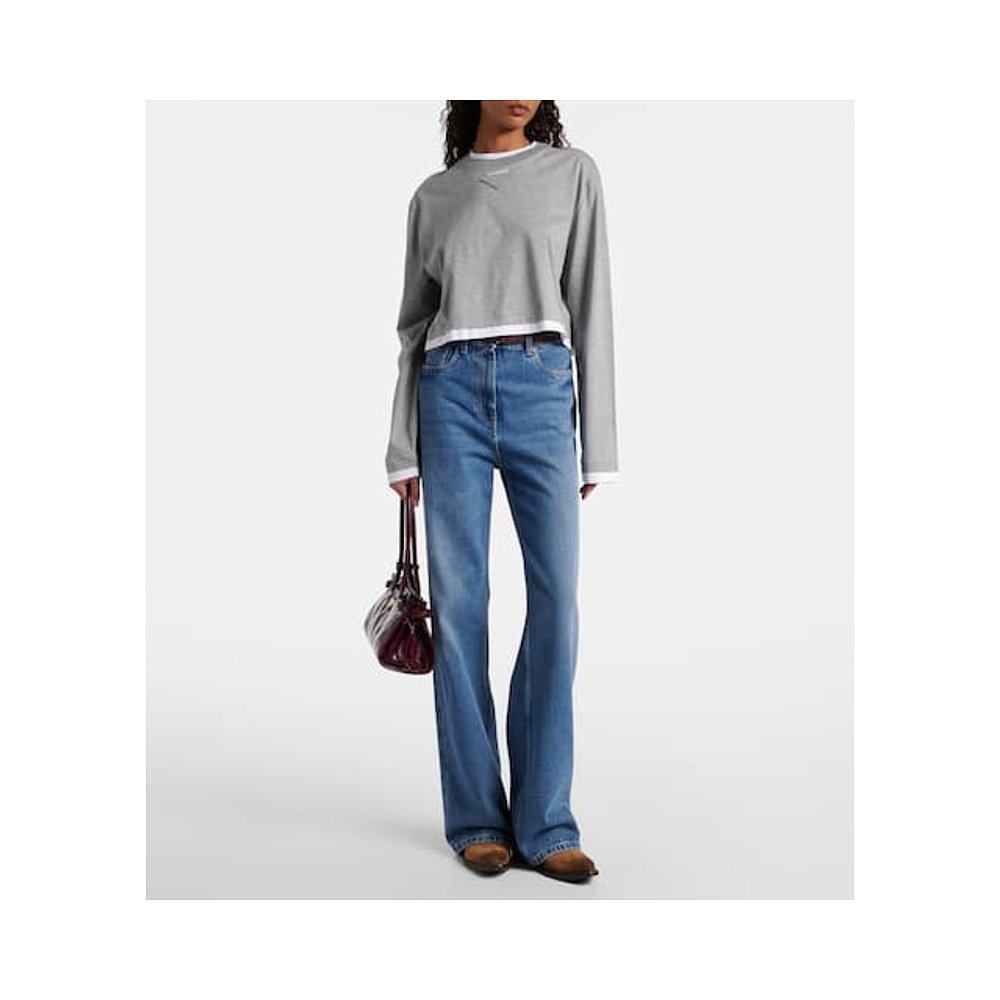 香港直邮Prada 普拉达 女士 短款层叠感棉质针织T恤
