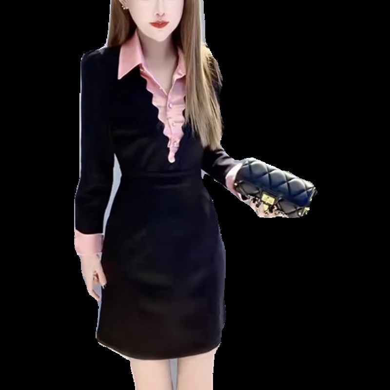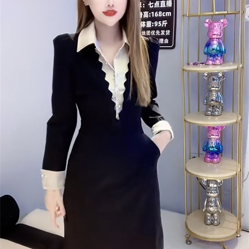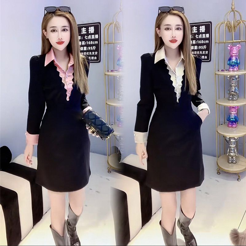 假两件气质连衣裙女23秋冬设计感精致洋气衬衫领百搭显瘦a字短裙